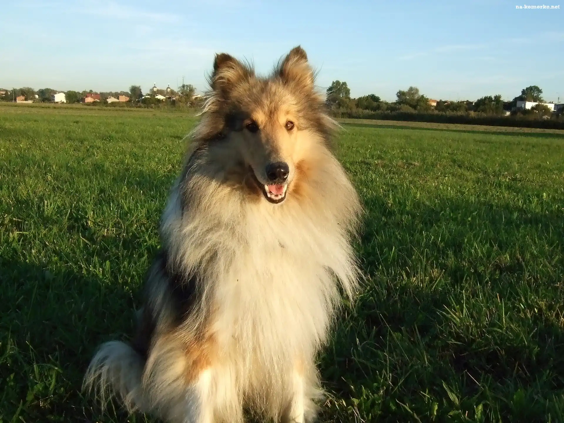 Siedzący, Owczarek szkocki długowłosy, łąka na Komórkę