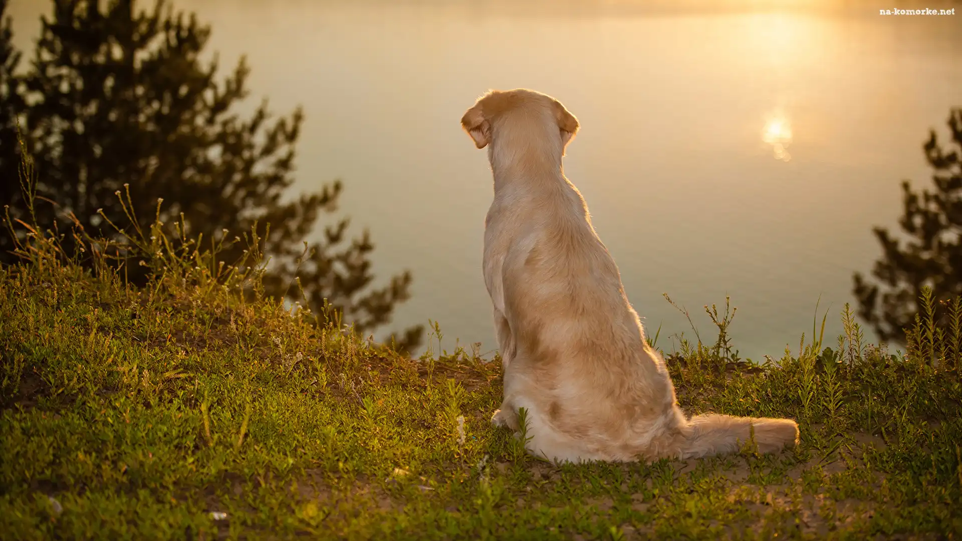 Siedzący, Jezioro, Pies, Golden retriever na Komórkę