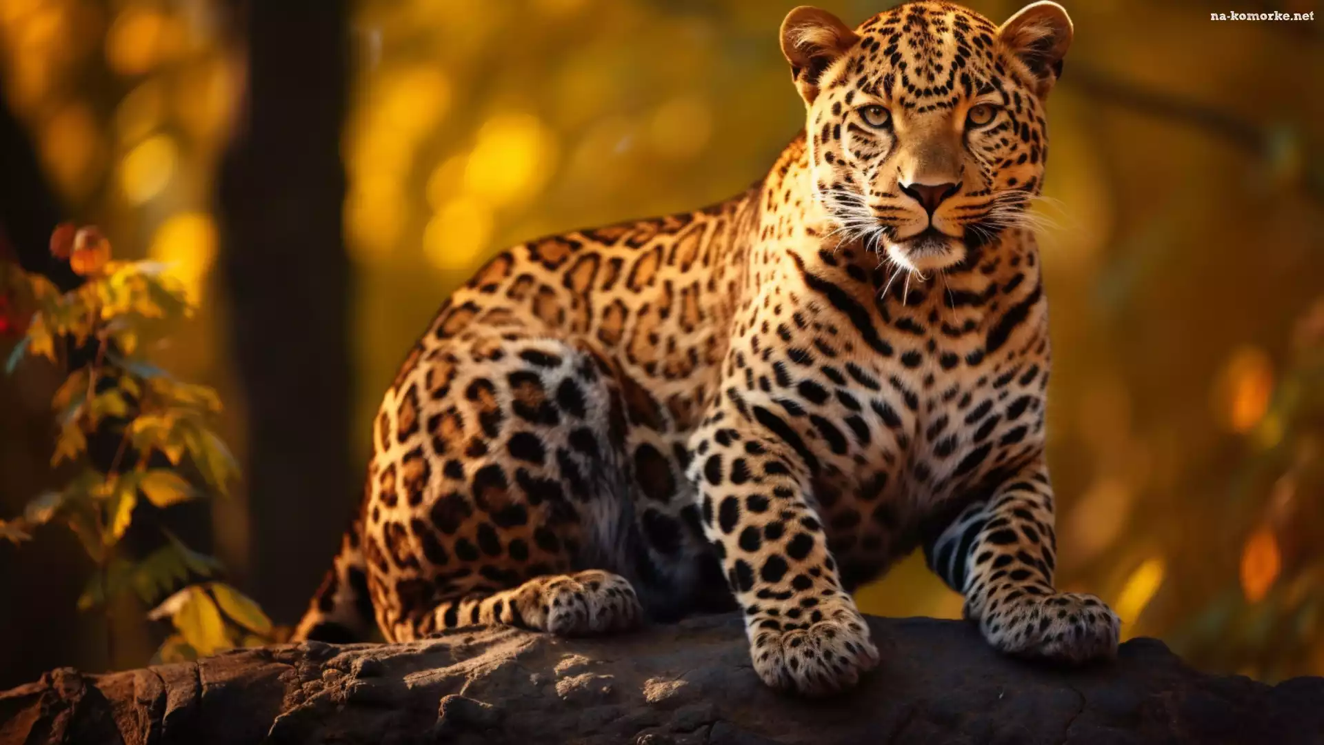 Spojrzenie, Liście, Jaguar, Siedzący na Komórkę