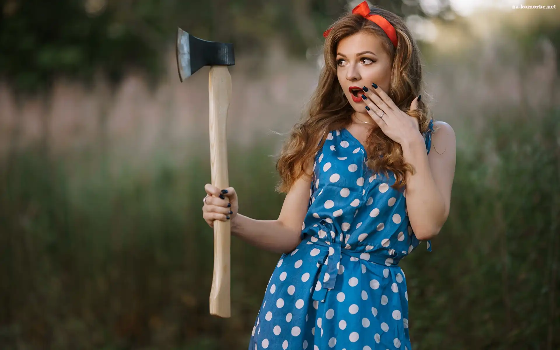 Sukienka, Kobieta, Kokarda, Siekiera, Czerwona, Szatynka na Komórkę