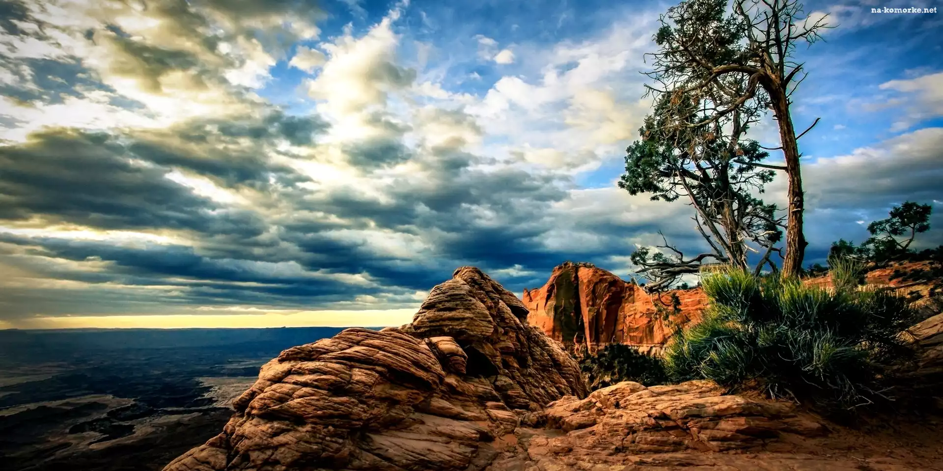 Skała, Morze, Kanion, Chmury, Drzewo na Komórkę