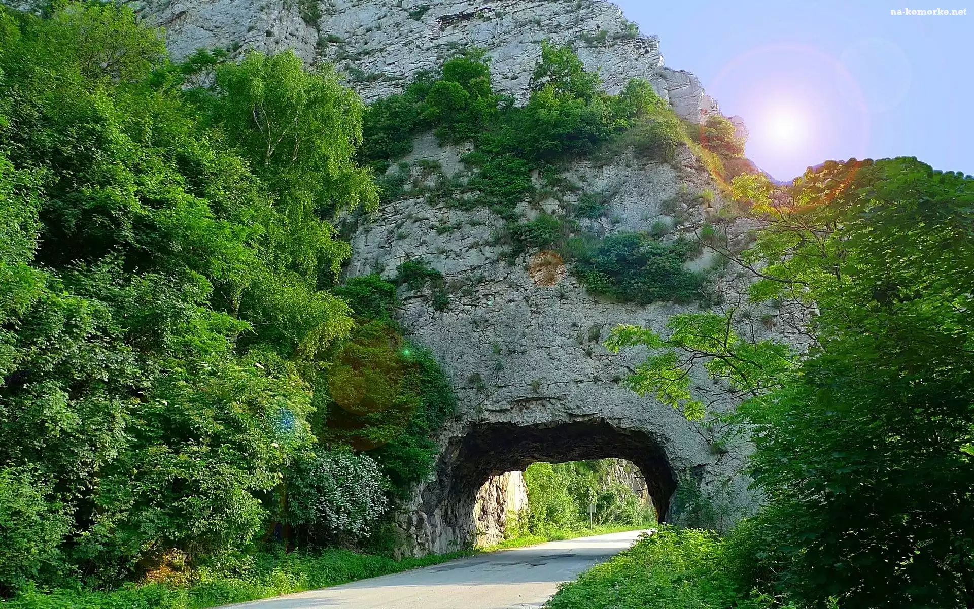 Skała, Tunel, Drzewa, Droga na Komórkę