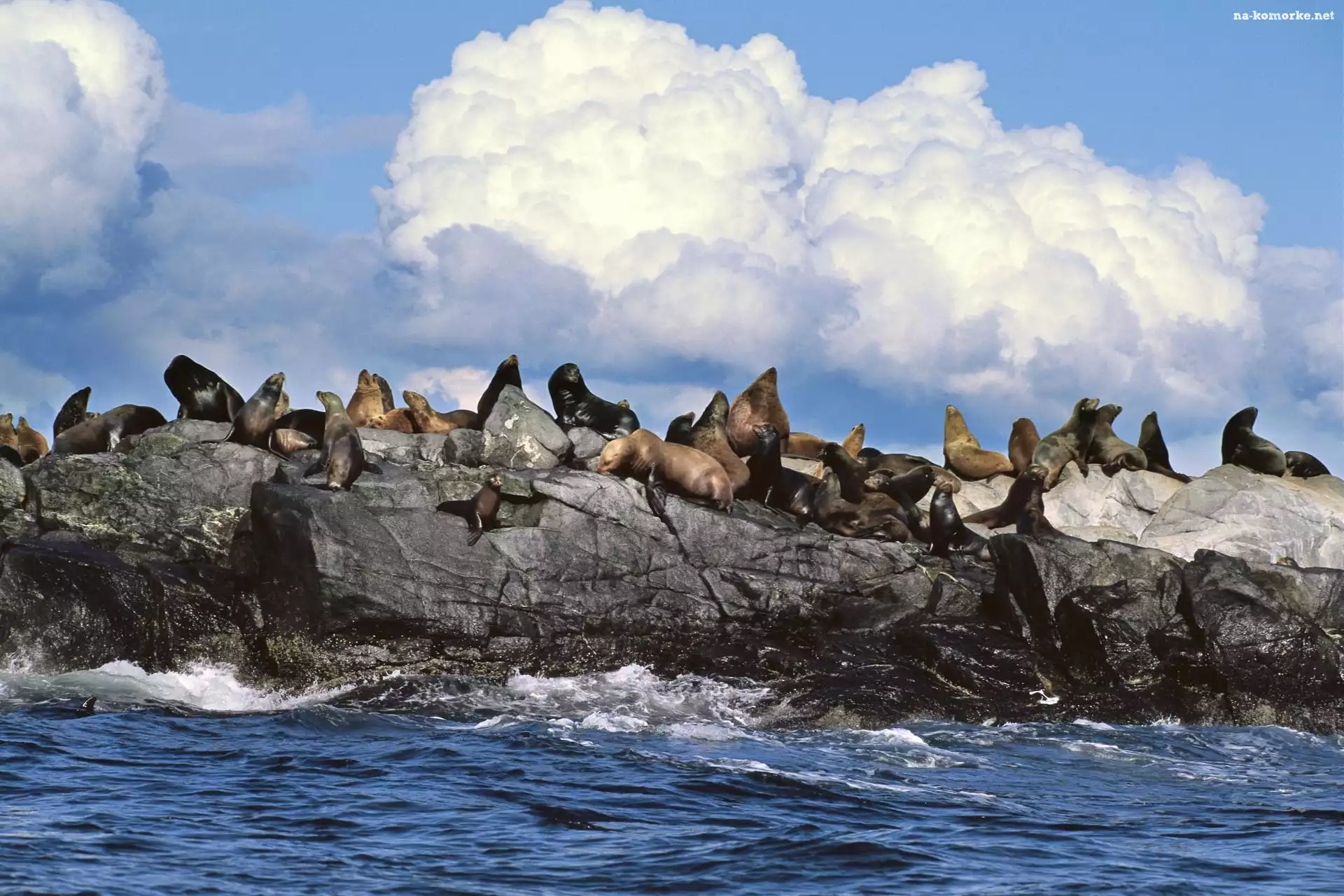 foki, skała, morze na Komórkę