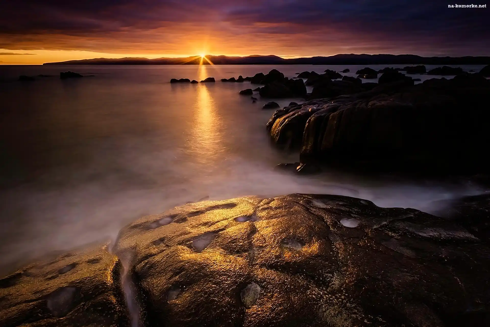 Skała, Zachód, Słońca, Morze, Kamienie na Komórkę