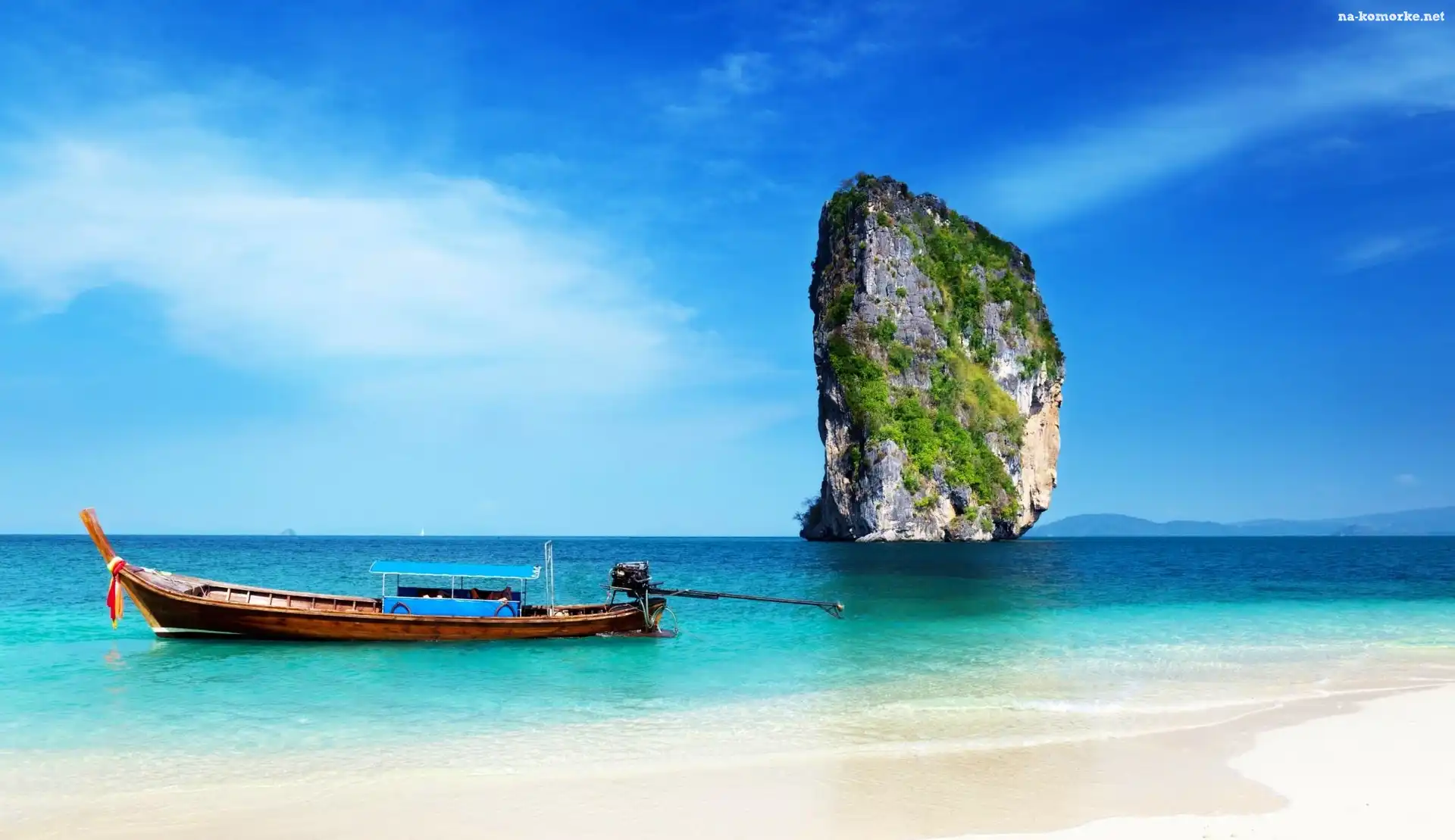Skała, Niebo, Łódź, Morze na Komórkę