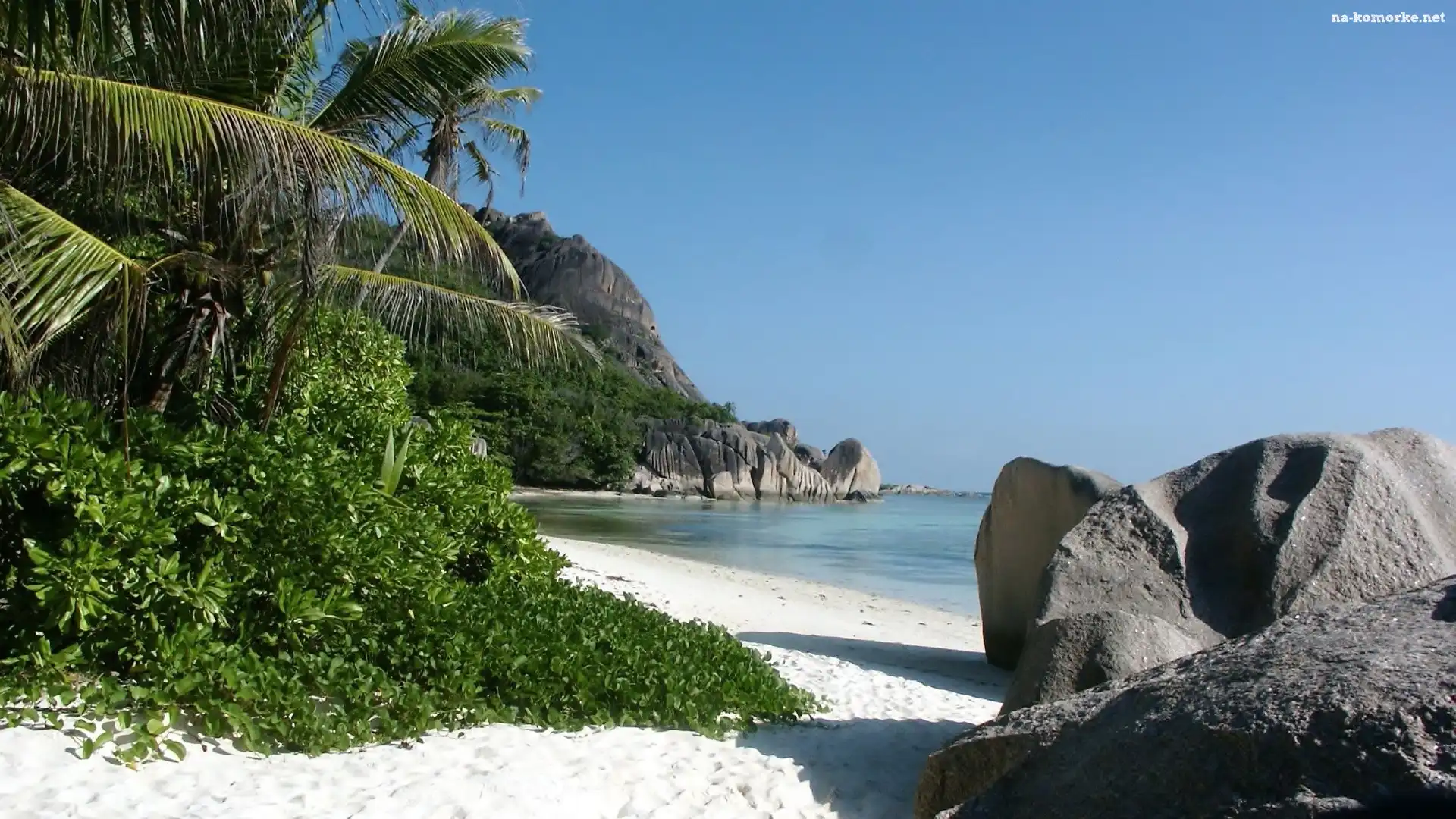 Skała, palma, Piasek, Góra, Roślinność, Woda na Komórkę