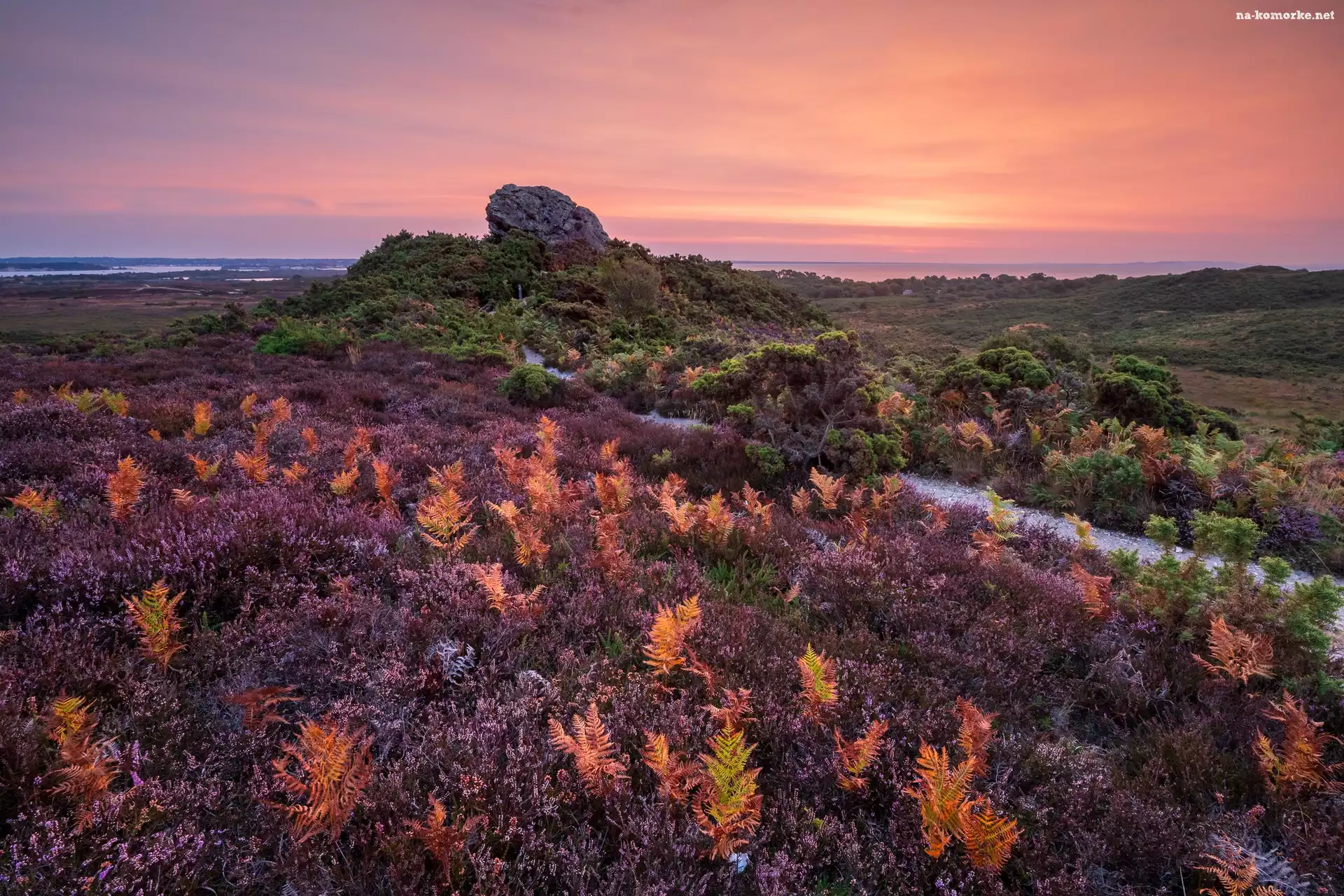 Skała, Hrabstwo Durset, Krzewy, Wrzosowisko, Półwysep Purbeck, Anglia, Ścieżka, Paprocie na Komórkę |
