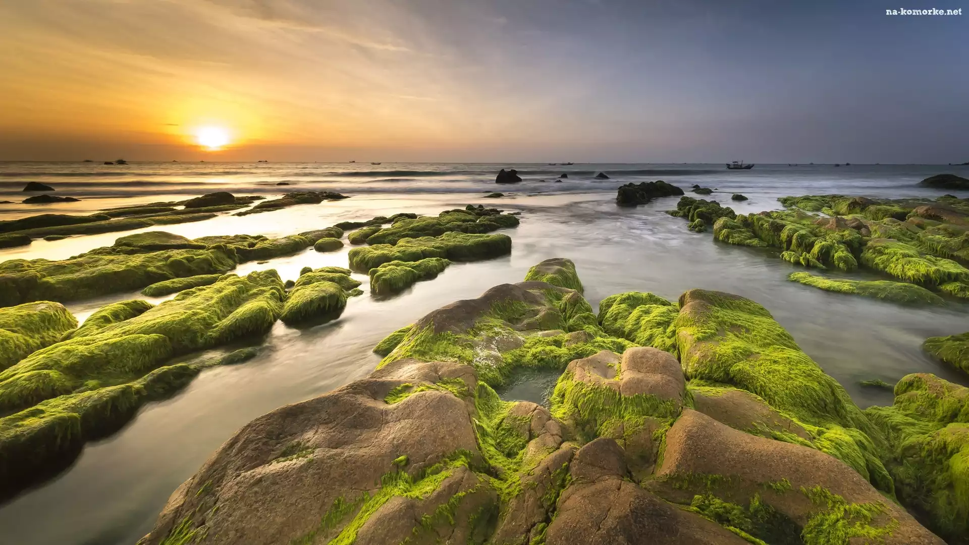 Omszałe, Skalisty, Wybrzeże, Wschód słońca, Brzeg, Skały na Komórkę