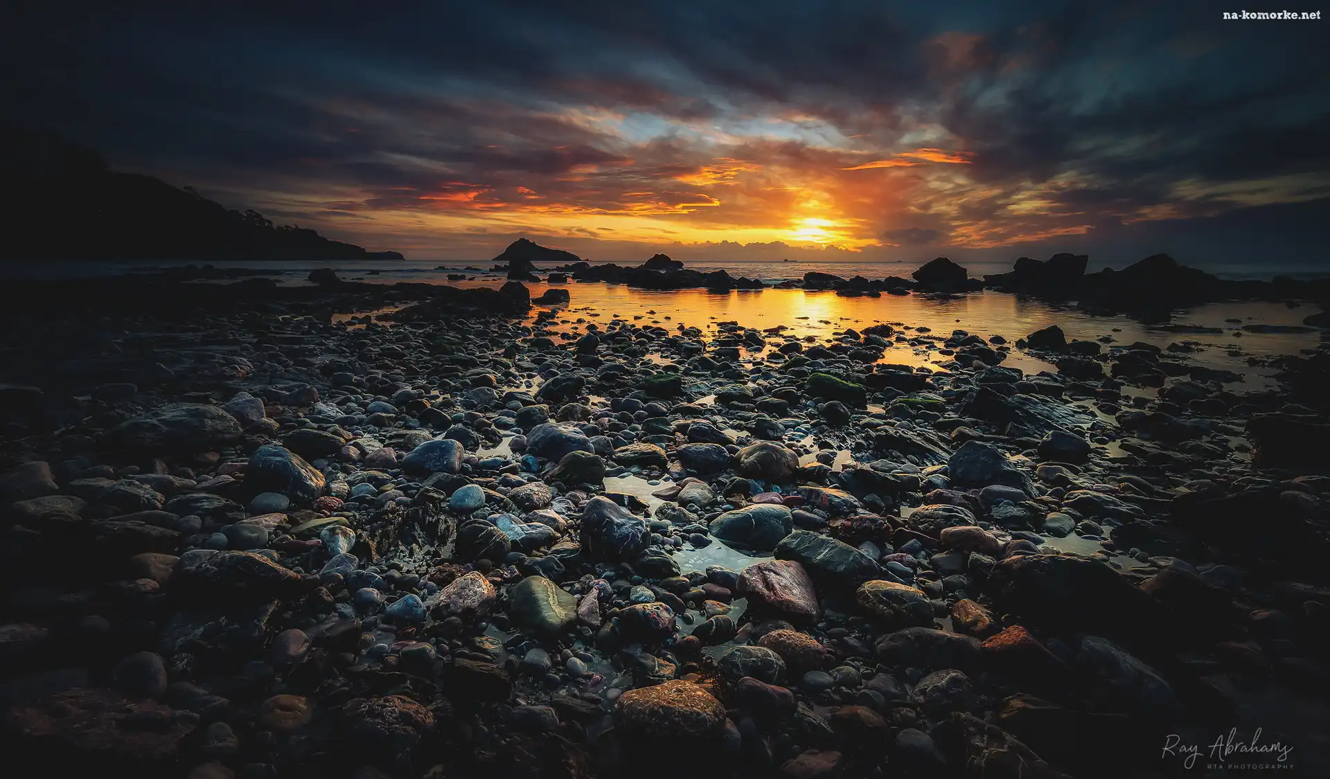 Morze, Hrabstwo Devon, Anglia, Zachód słońca, Chmury, Kamienie, Skały na Komórkę