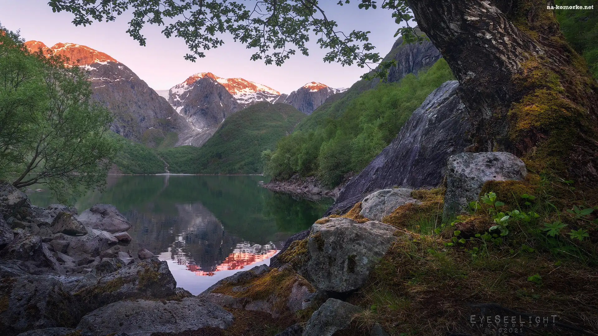 Góry, Skały, Drzewa, Jezioro, Rośliny na Komórkę