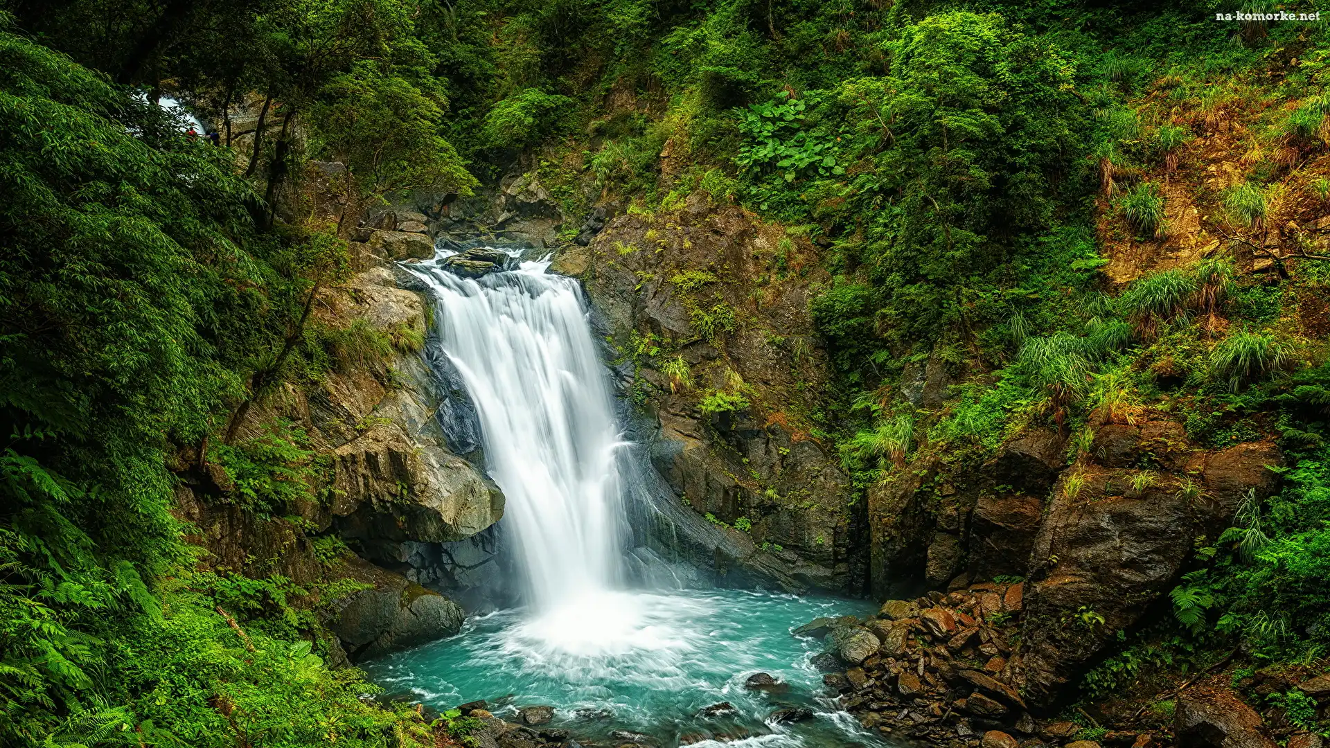 Skały, Wodospad Neidong Falls, Roślinność, Krzewy, Tajwan, Omszałe, Nowe Tajpej, Drzewa, Dzielnica Wulai na Komórkę |