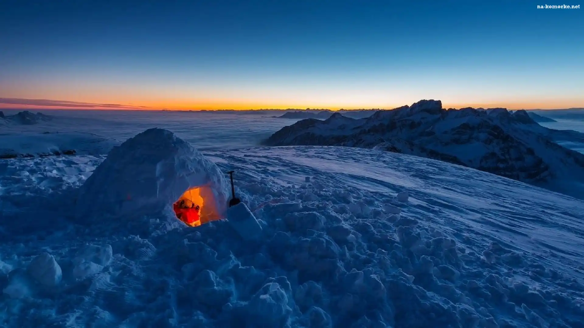 Skały, Zachód, Słońca, Igloo, Śnieg na Komórkę