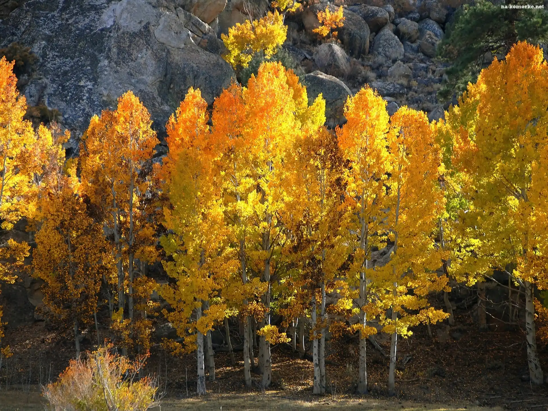 Skały, Drzewa, Jesienne, Złote na Komórkę