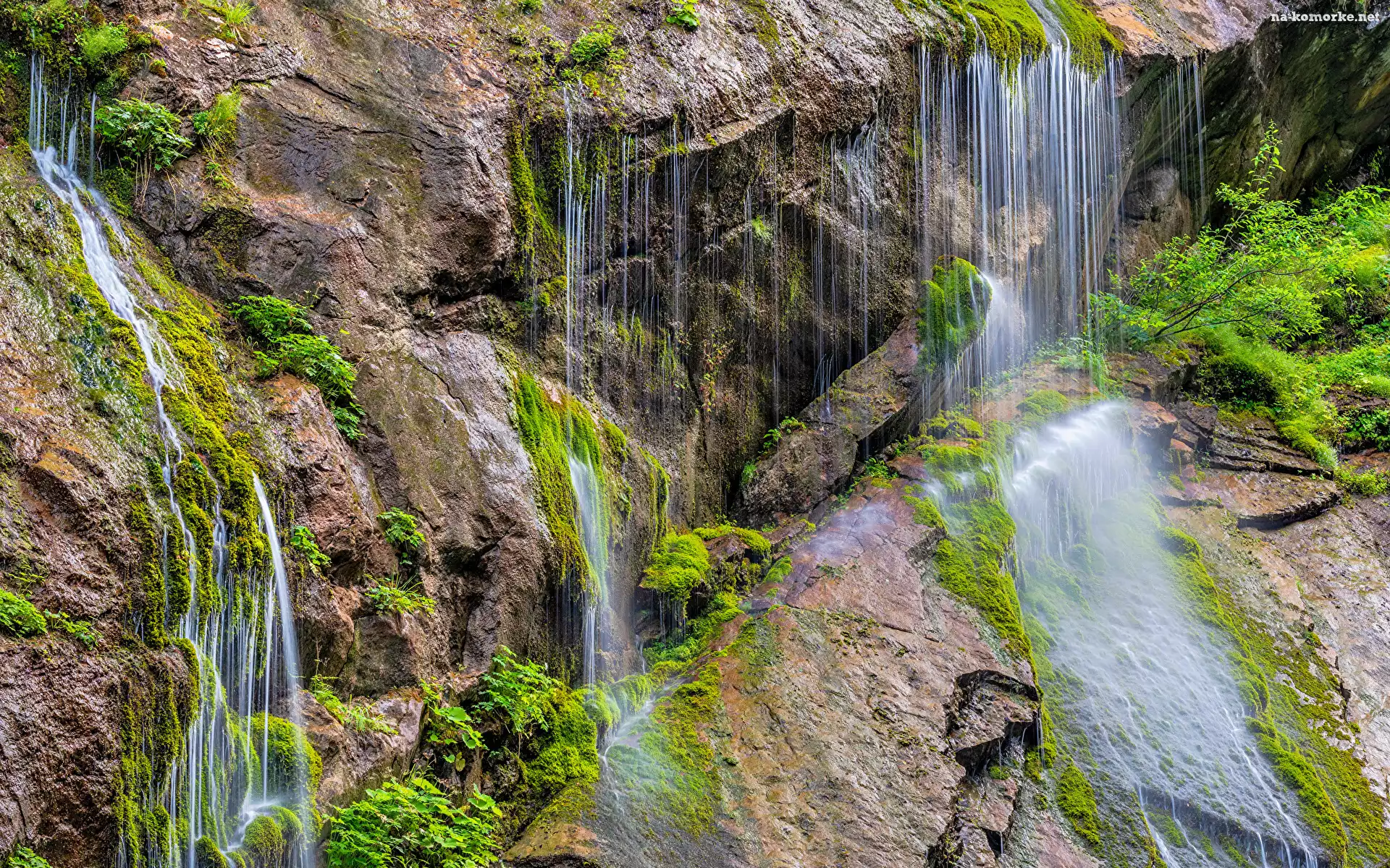 Mech, Rośliny, Wodospad, Skały na Komórkę