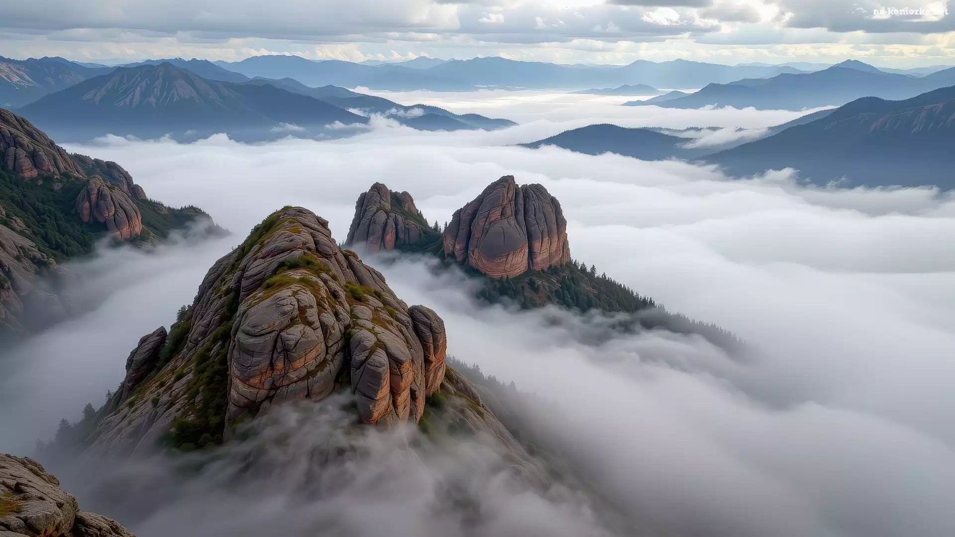 Góry, Skały, Opadająca, Szczyty, Mgła na Komórkę