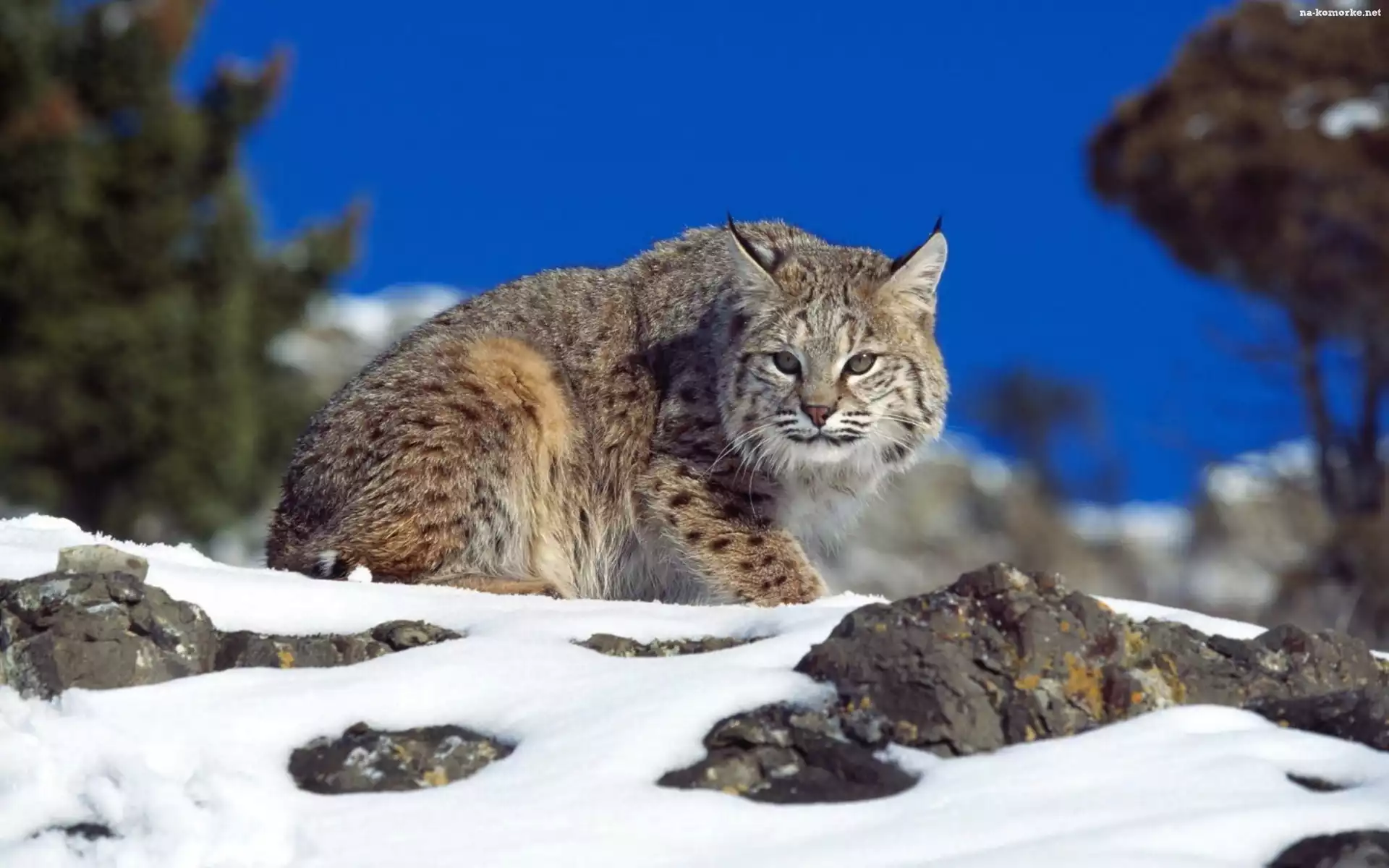 Skały, Ryś, Zima, Rozmycie, Ośnieżone, Roślinność na Komórkę
