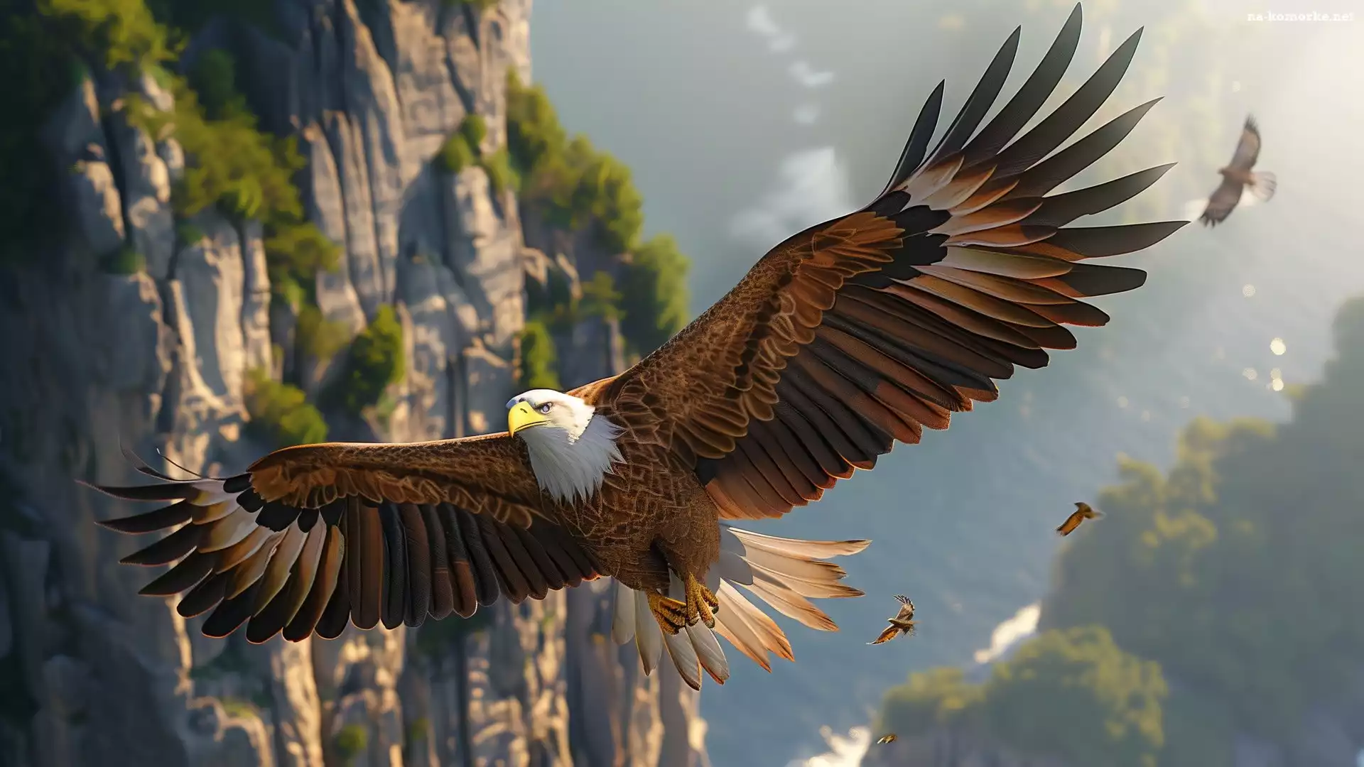 Skrzydła, Ptak, Rozpostarte, Skały, Bielik amerykański, Lot na Komórkę