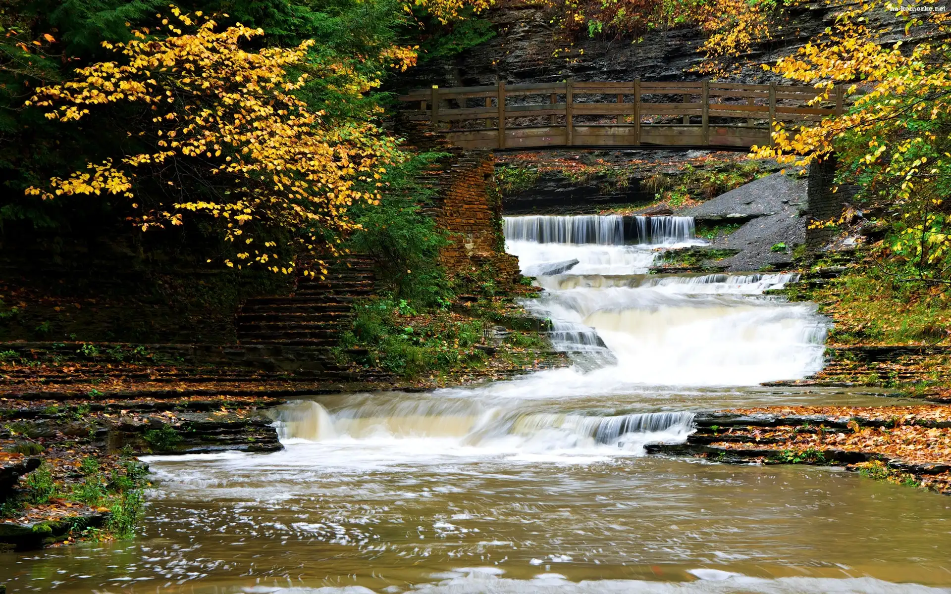 Skały, Most, Wodospad, Jesień, Rzeka, Las na Komórkę
