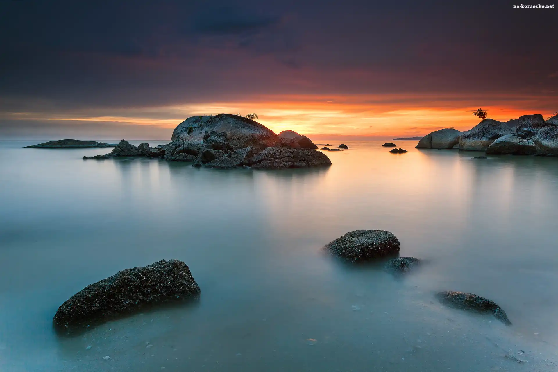 Skały, Zachód słońca, Morze na Komórkę