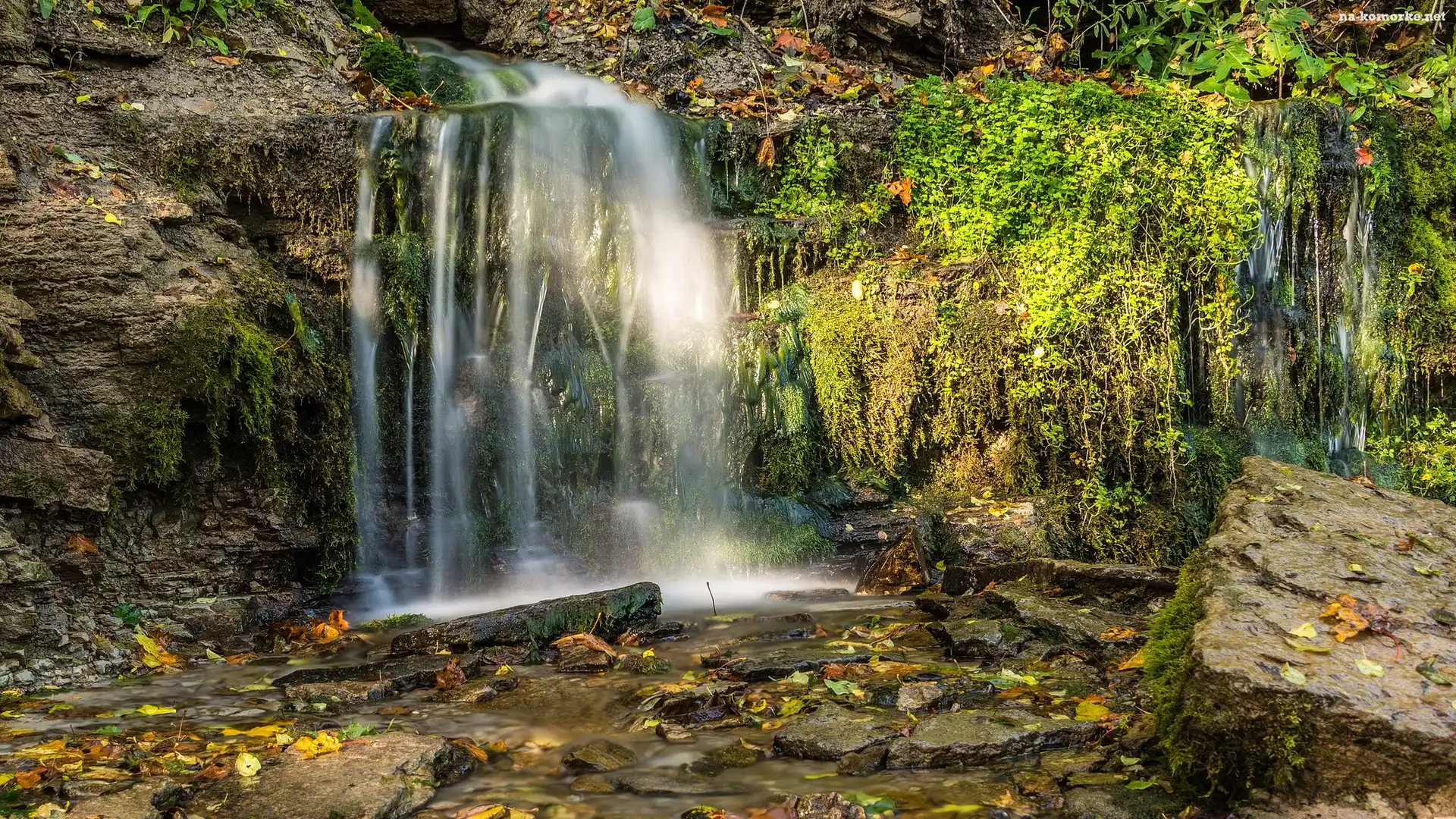Skały, Rzeka, Strumyk, Liście, Uskok, Rośliny na Komórkę