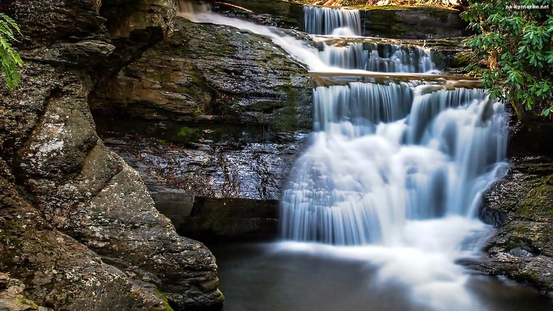 Wodospad, Skały, Liście na Komórkę
