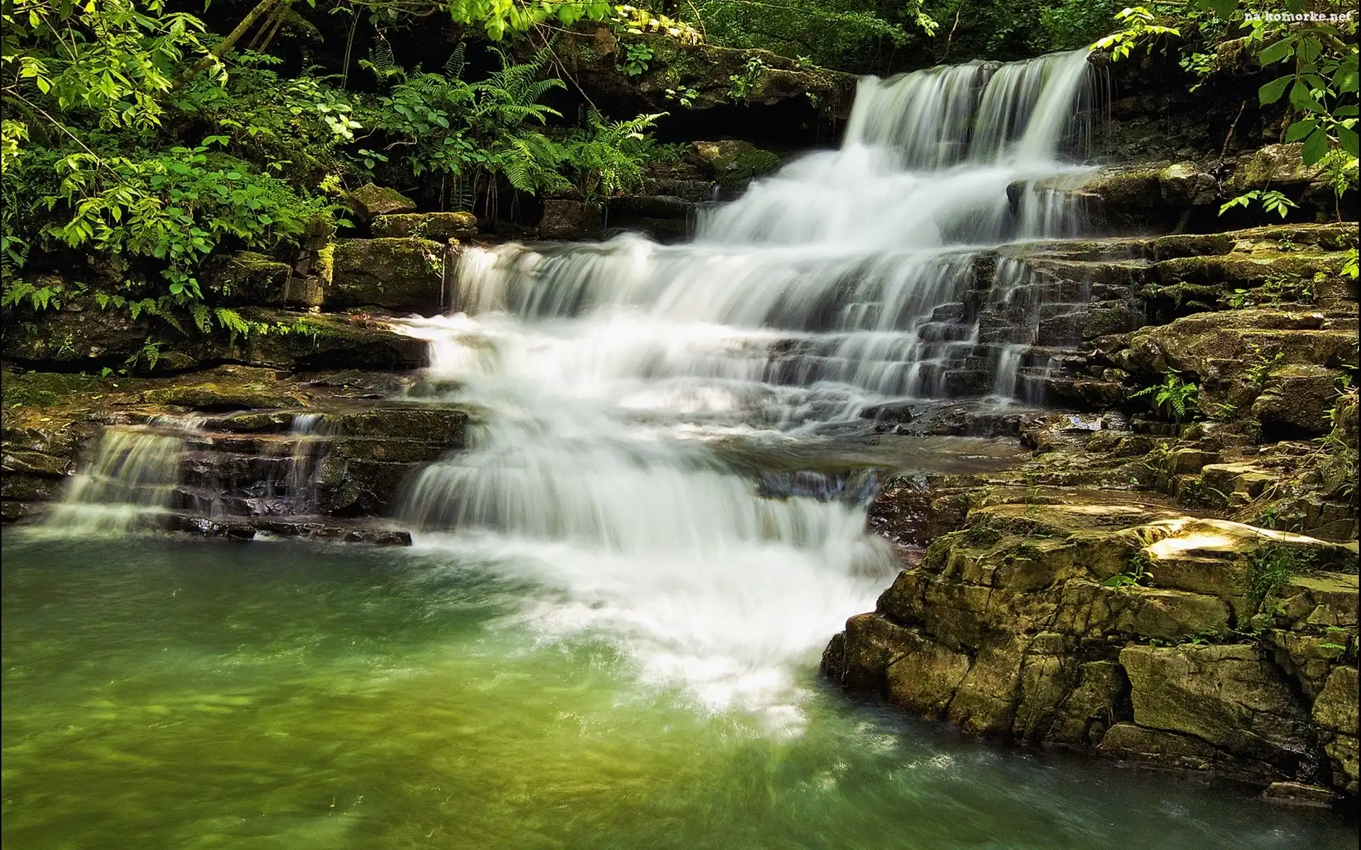 Wodospad, Skały, Zieleń na Komórkę