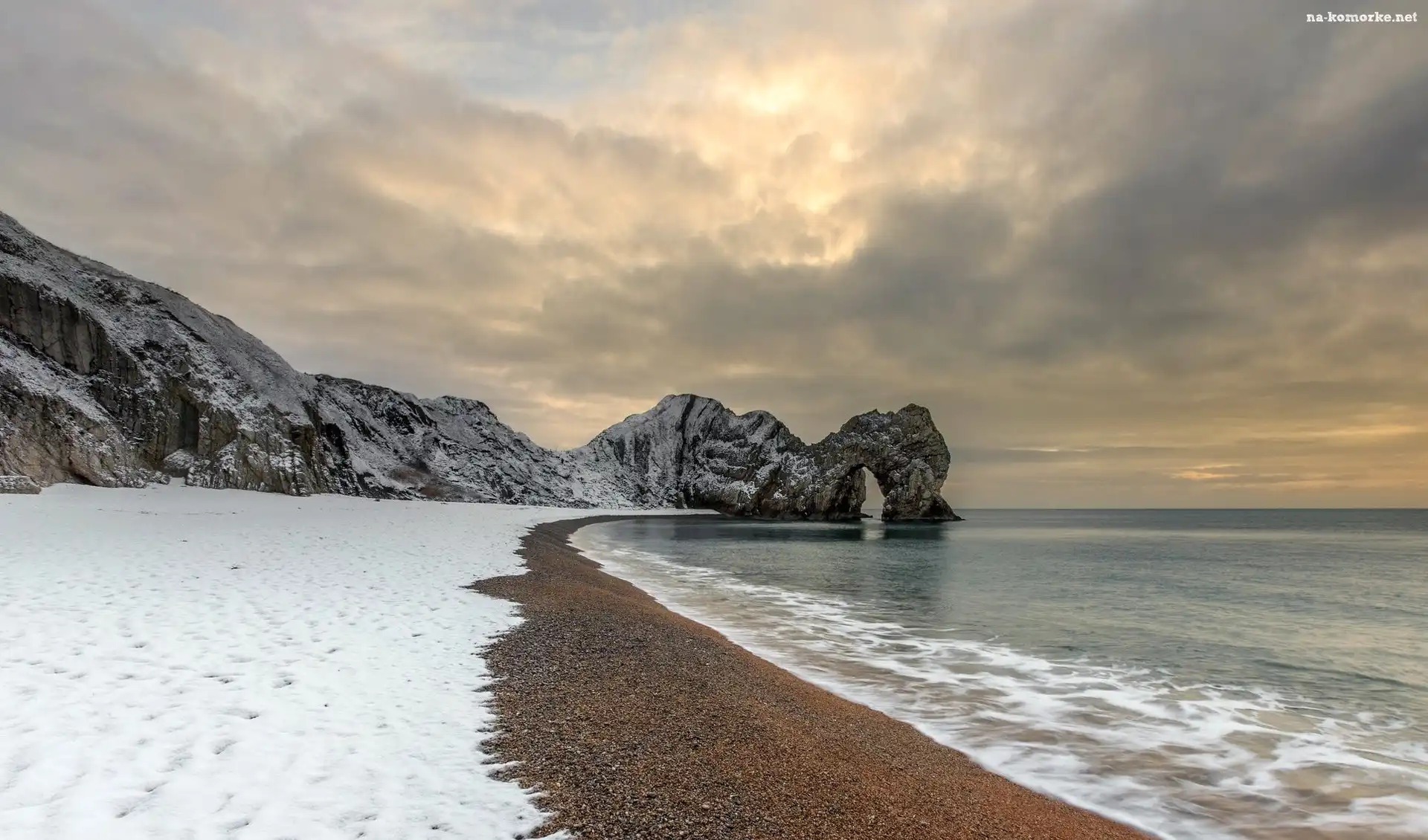 Anglia, Zima, Wybrzeże, Wybrzeże Jurajskie, Morze, Durdle Door, Skały na Komórkę