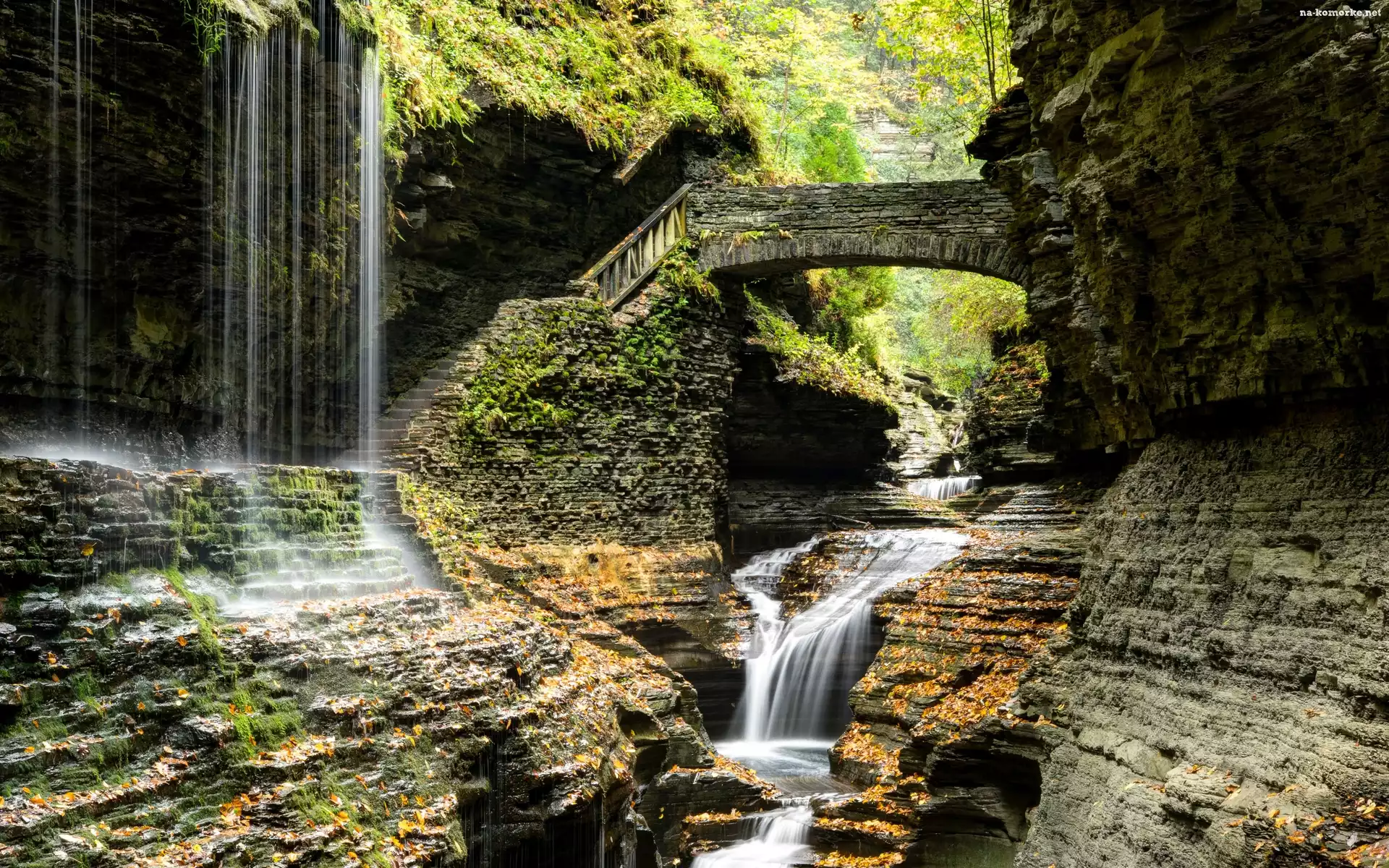 Most, Stany Zjednoczone, Park Narodowy Watkins Glen, Wodospad, Skały na Komórkę