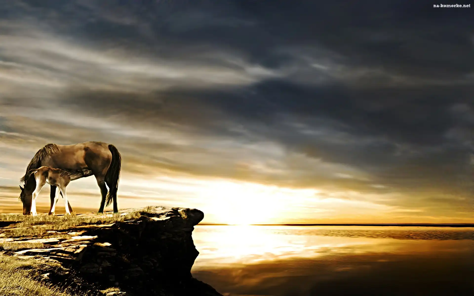 Skarpa, Wschód, Słońca, Konie, Morze na Komórkę