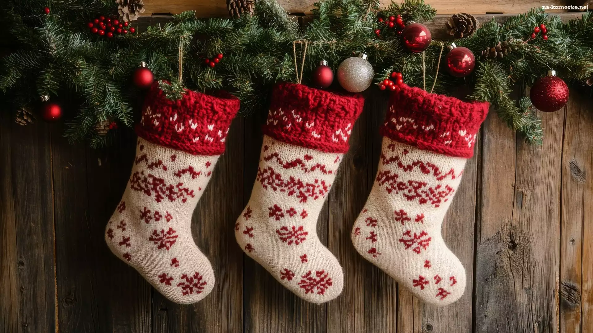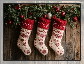 Skarpety, Szyszki, Gałązki, Boże Narodzenie, Bombki, Deski, Dekoracja, Trzy na Komórkę