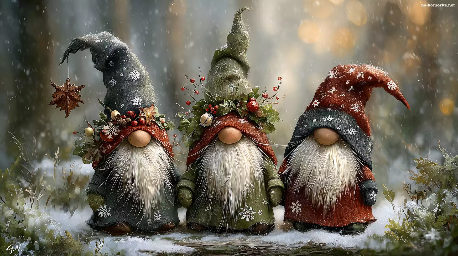 Trzy, Białe, Brody, Skrzaty, Grafika AI na Komórkę