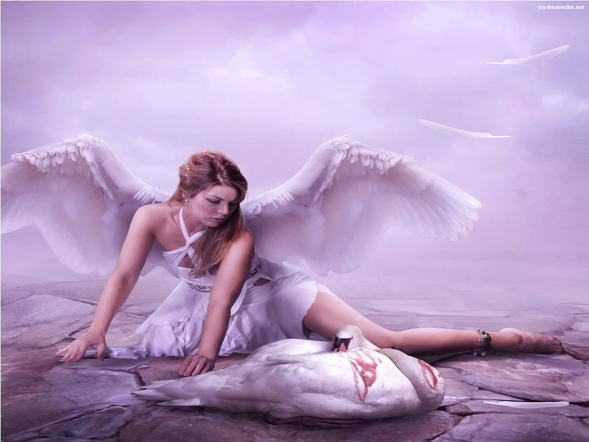 Kobieta, Skrzydła, Łabędź na Komórkę
