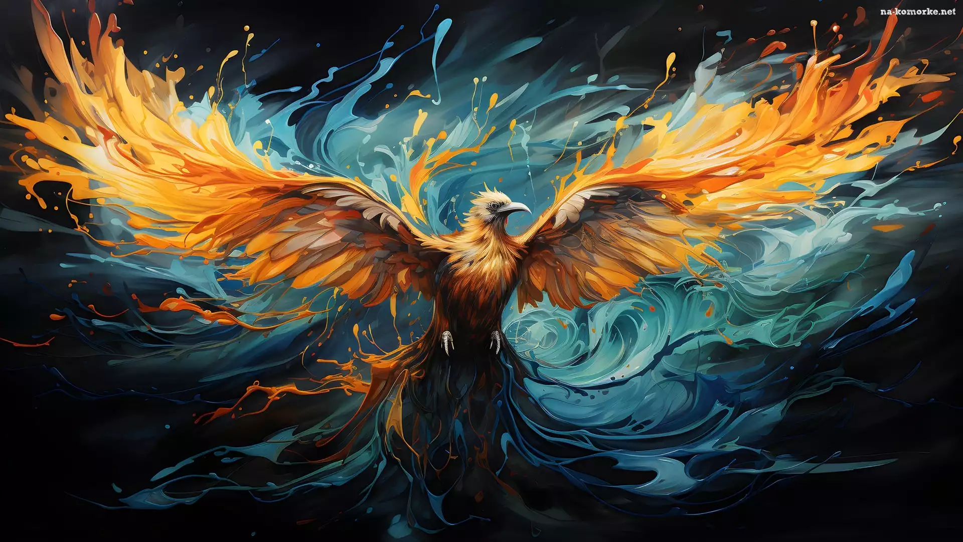 Żółte, Grafika, Rozpostarte, Skrzydła, Feniks, Ptak na Komórkę