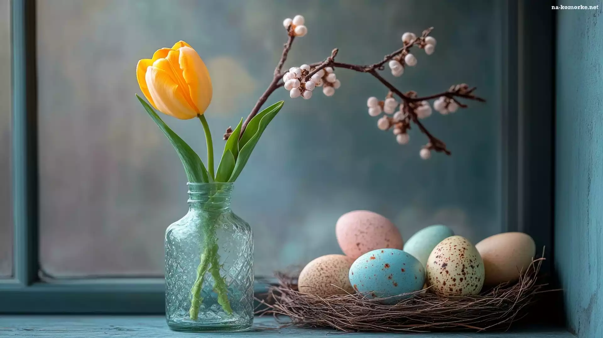 Gałazka, Wielkanoc, Tulipan, Słoik, Gniazdko, Pisanki na Komórkę