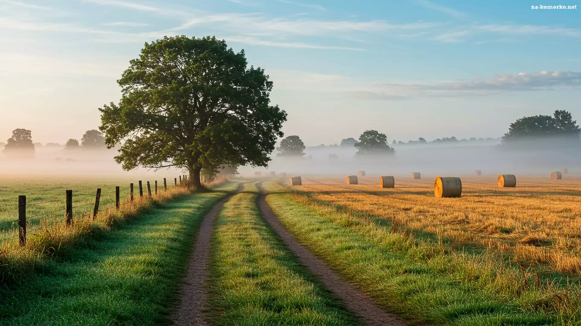 Mgła, Bele, Jesień, Słomy, Drzewo, Pole, Droga na Komórkę