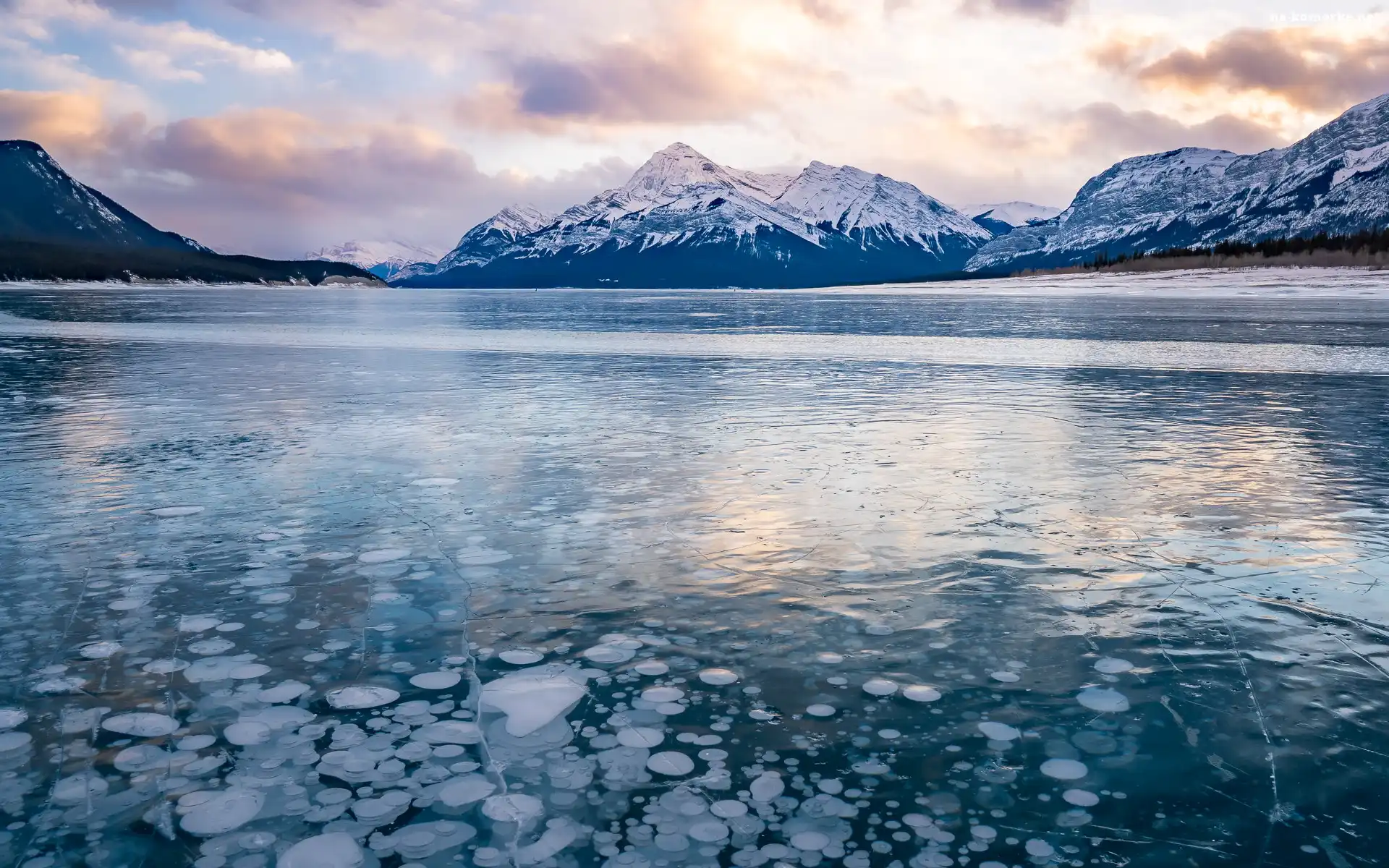 Zachód słońca, Zamarznięte, Góry, Kanada, Jezioro Abraham, Alberta na Komórkę