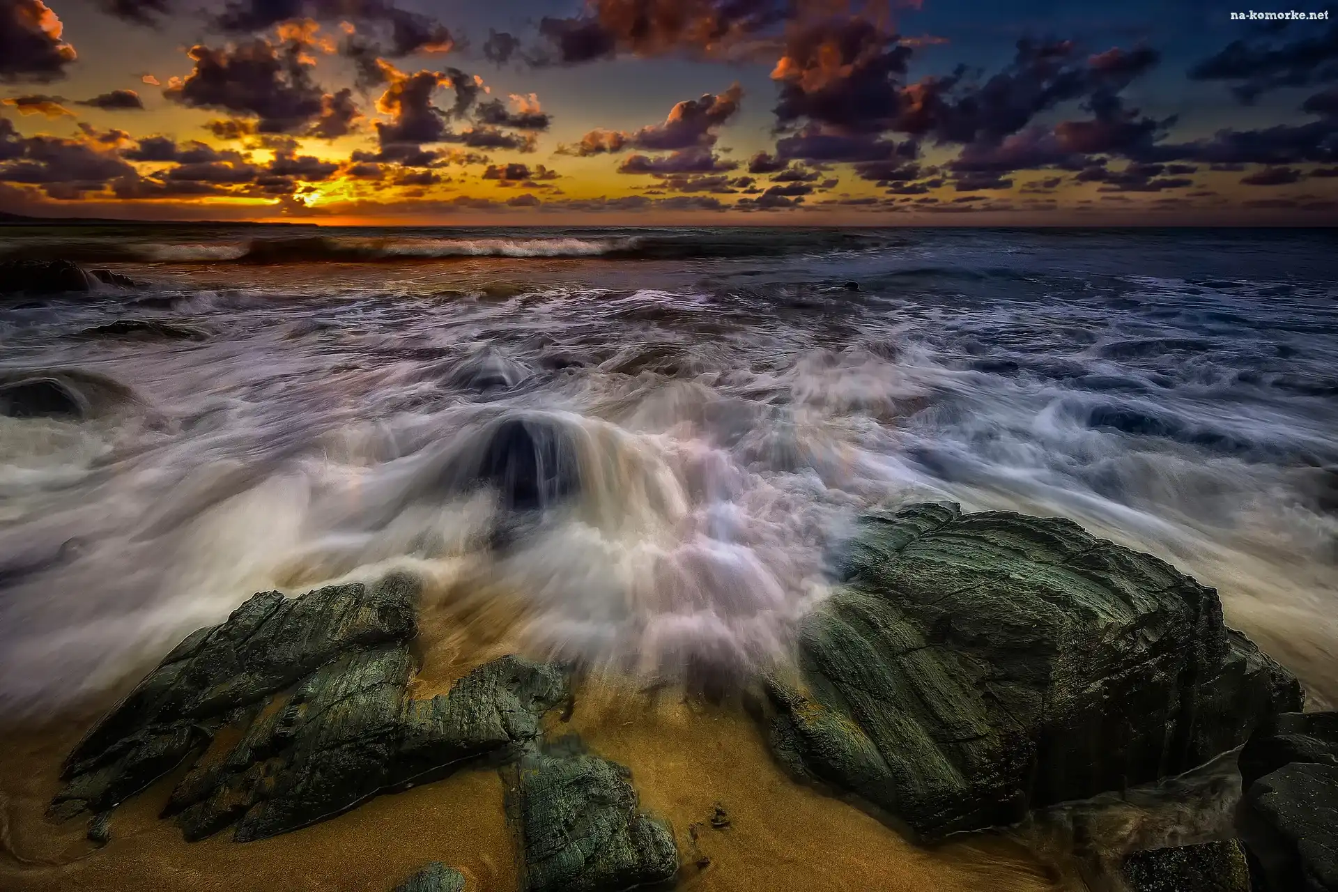 Słońca, Kamienie, Morze, Brzeg, Zachód na Komórkę