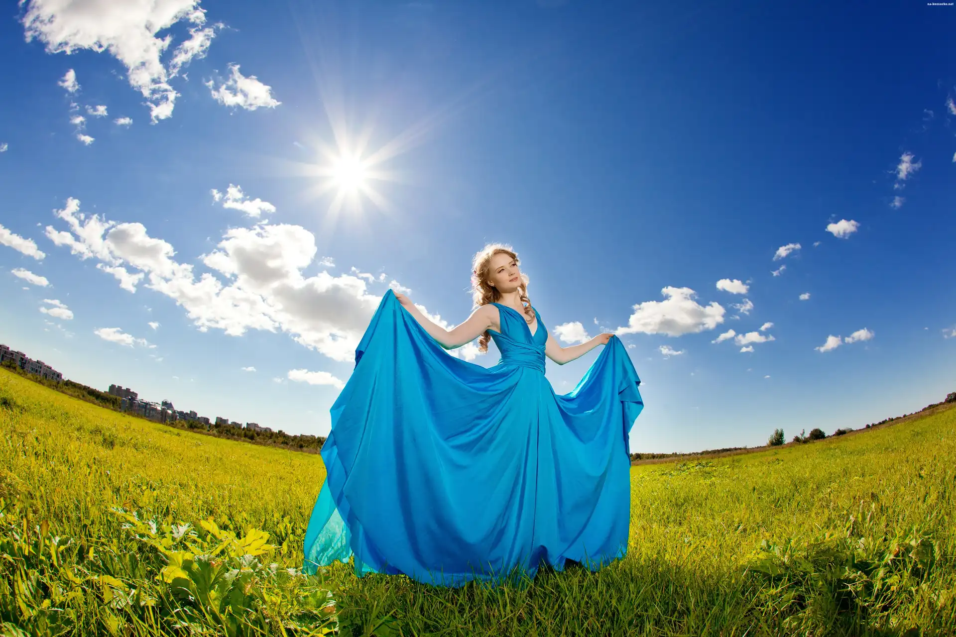 Słońca, Blondynka, Łąka, Chmury, Promienie na Komórkę