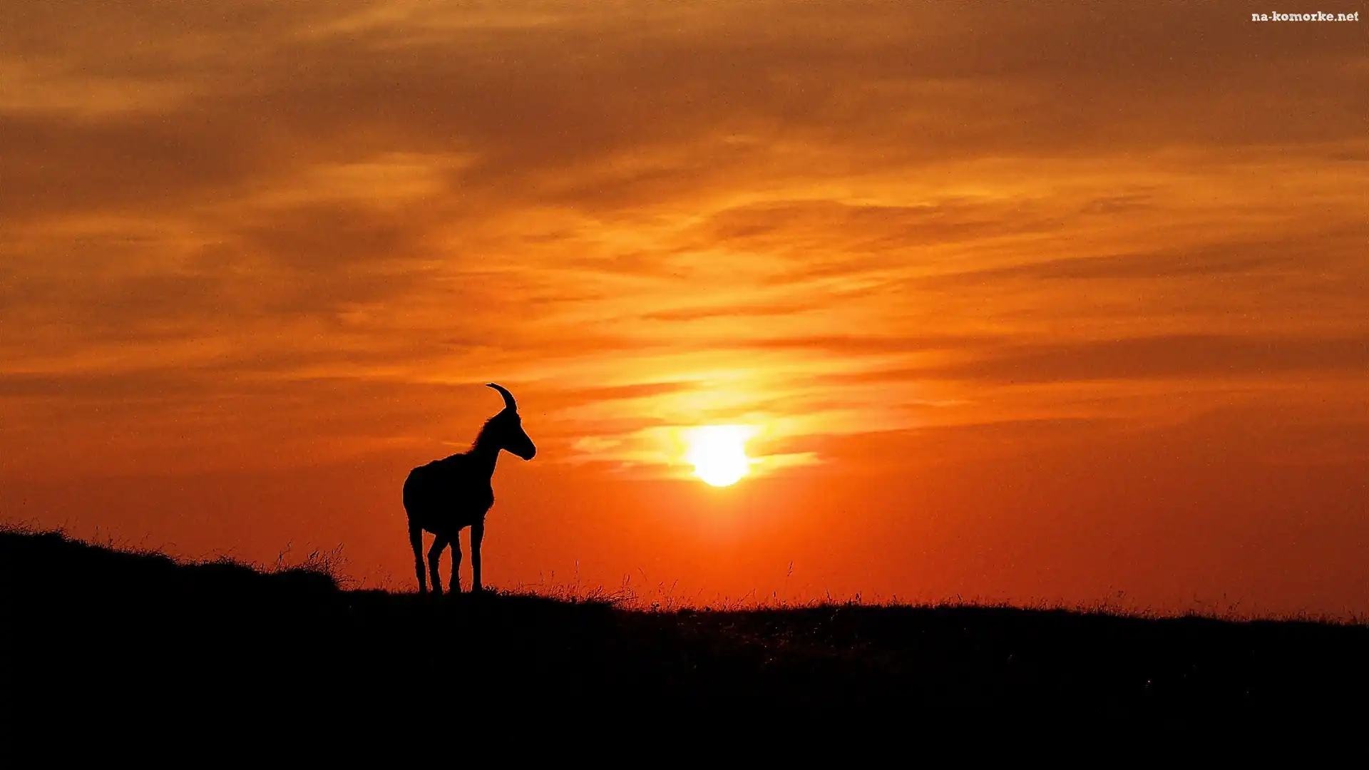 Słońca, Sawanna, Antylopa, Chmury, Zachód na Komórkę