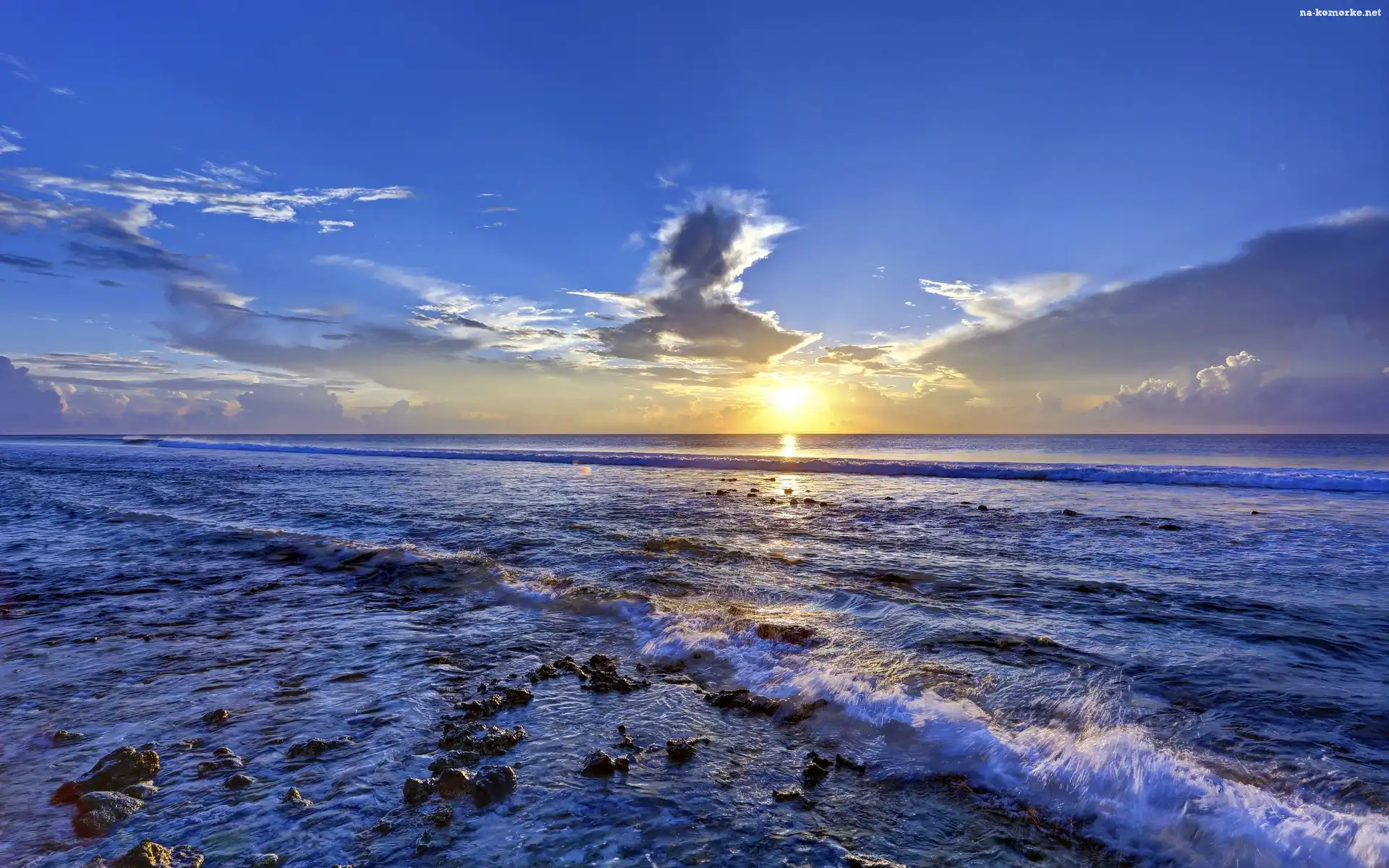 Słońca, Morze, Fale, Chmury, Zachód na Komórkę
