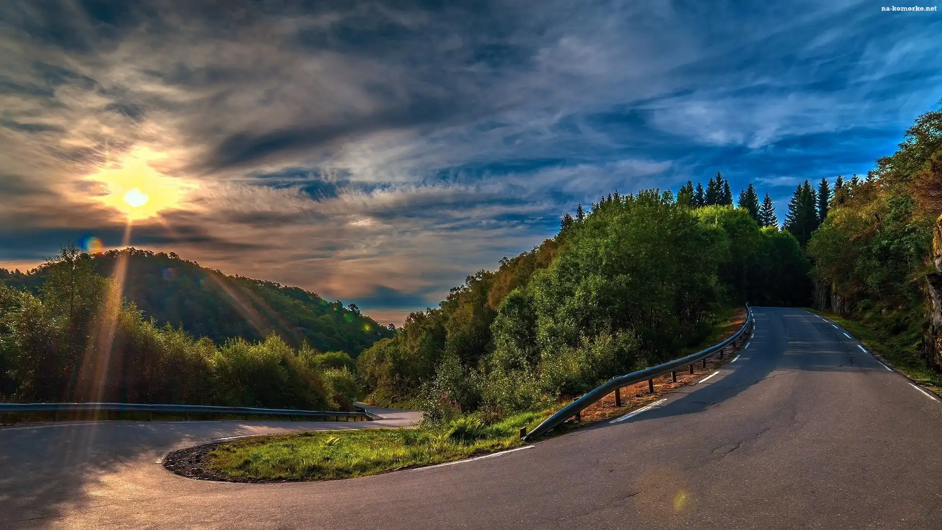 Słońca, Kręta, Górska, Droga, Promienie na Komórkę