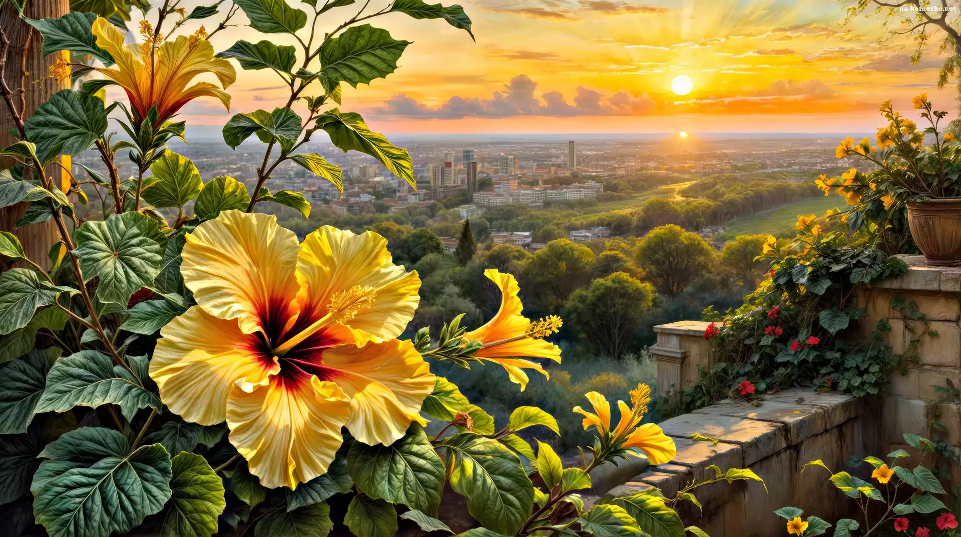 Hibiskus, Widok, Zachód słońca, Kwiaty, Grafika na Komórkę