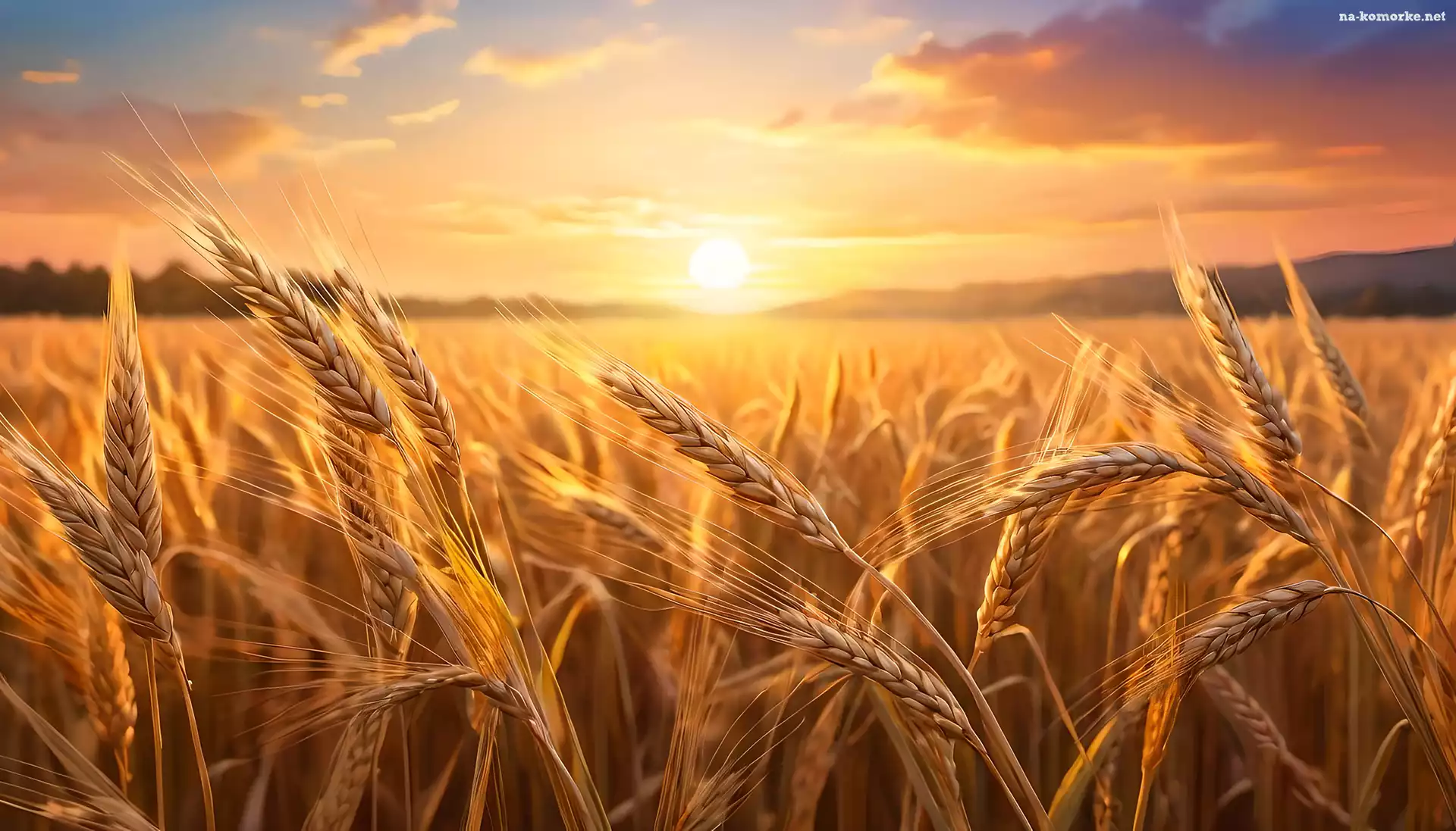 Kłosy, Pole, Zachód słońca, Zboże, Grafika na Komórkę