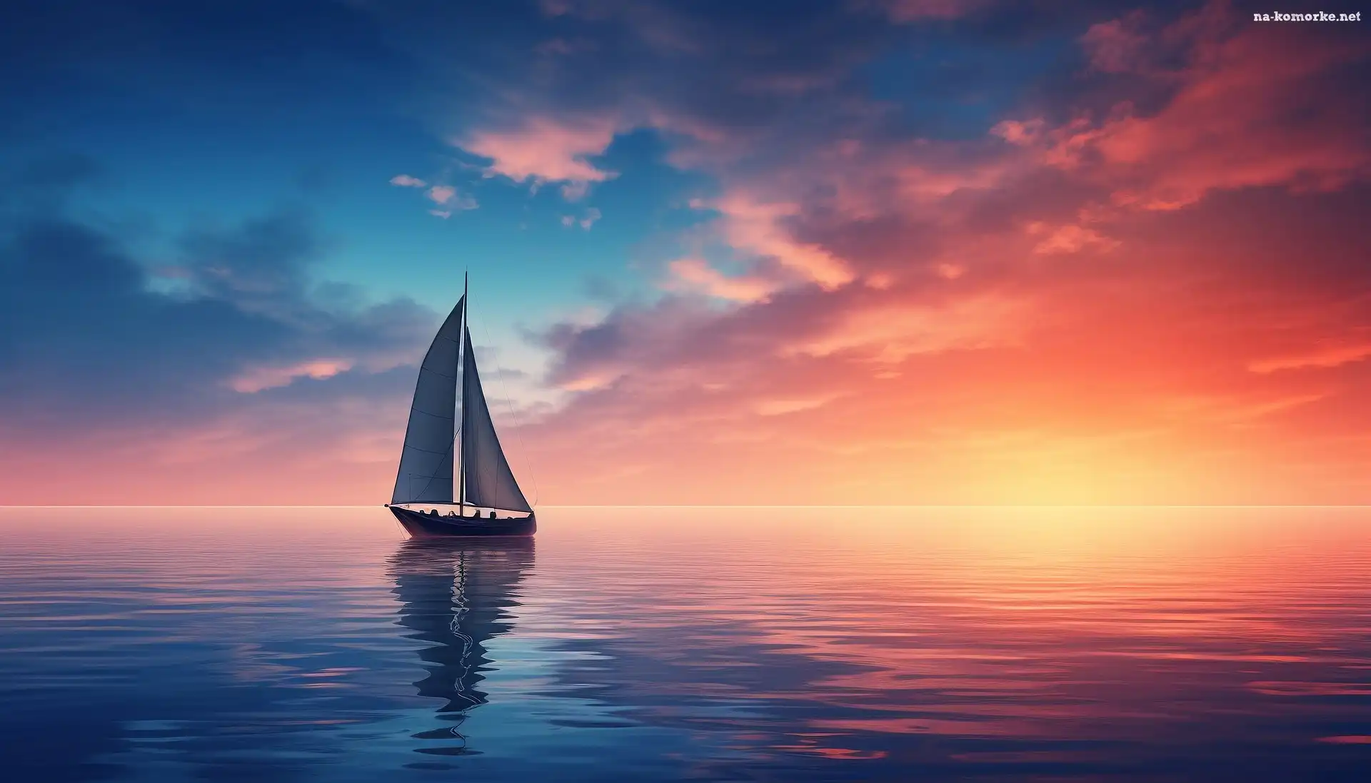 Żaglówka, Niebo, Zachód słońca, Morze, Grafika na Komórkę