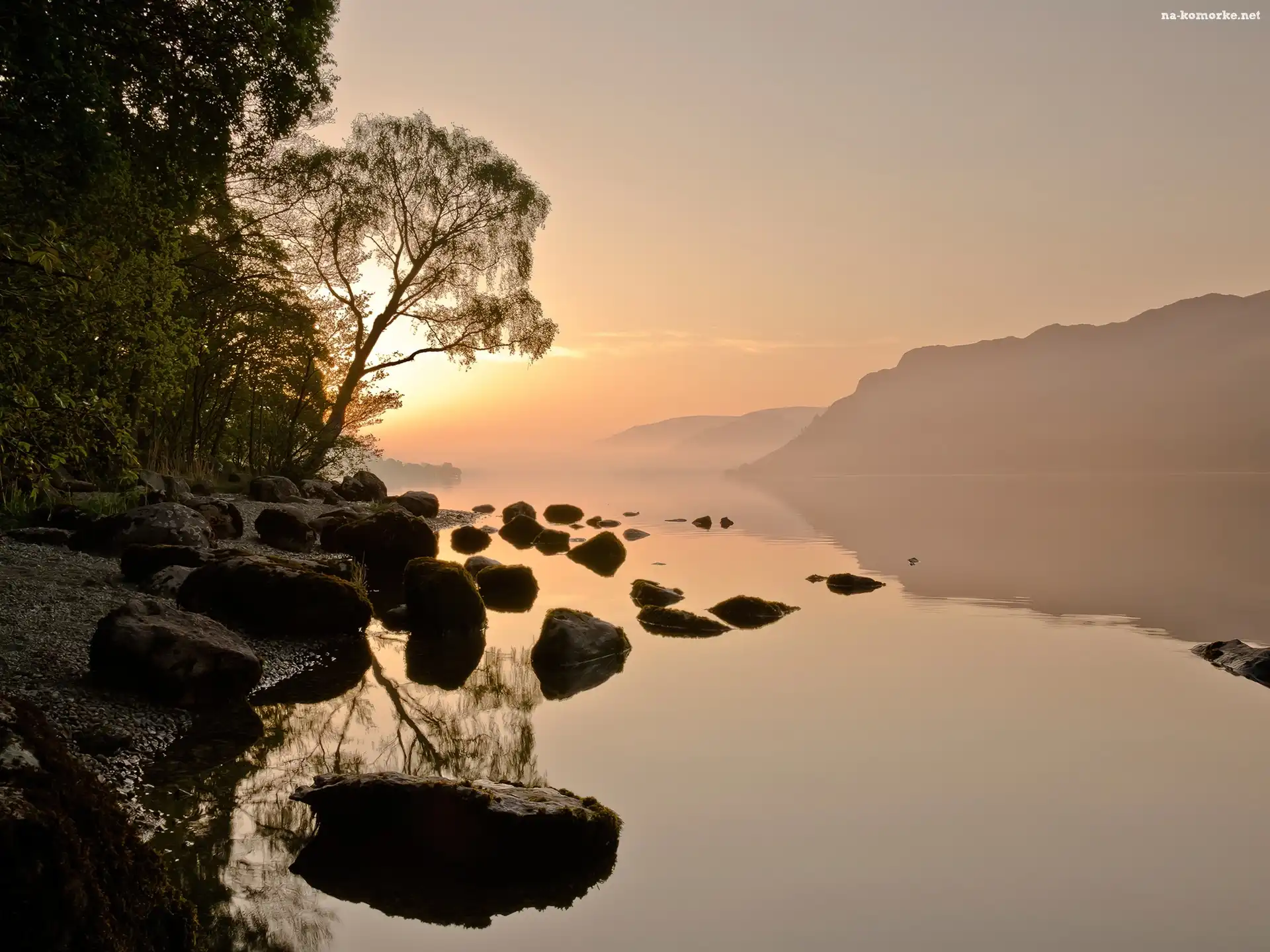 Słońca, Jezioro, Góry, Kamienie, Zachód na Komórkę