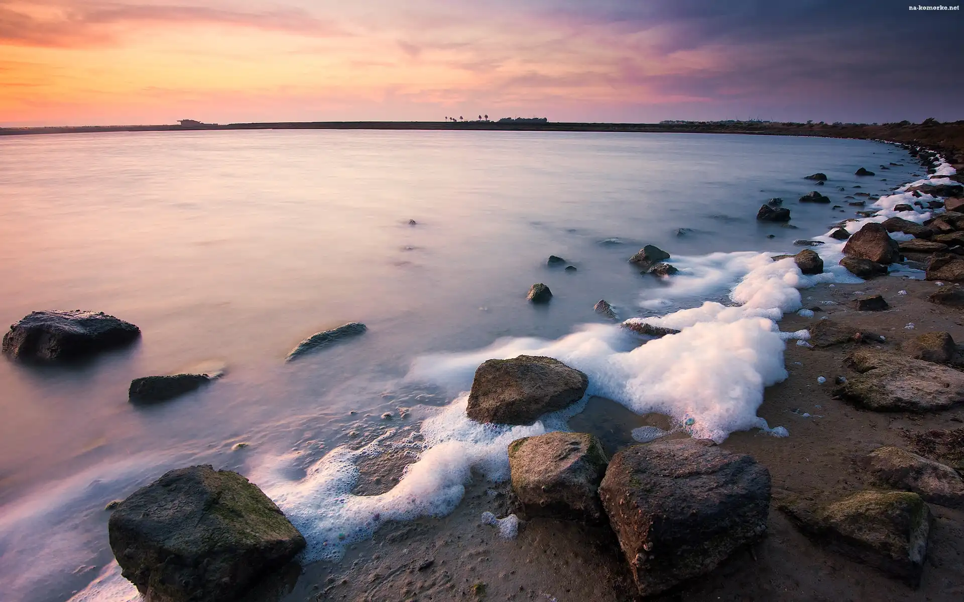 Słońca, Spieniona, Woda, Kamienie, Zachód na Komórkę