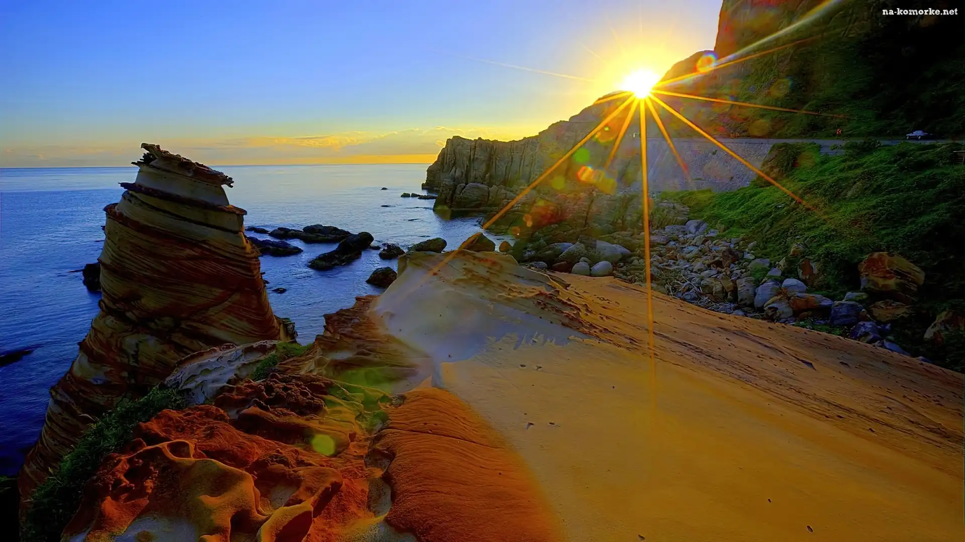 Słońca, Morze, Skały, Klif, Promienie na Komórkę