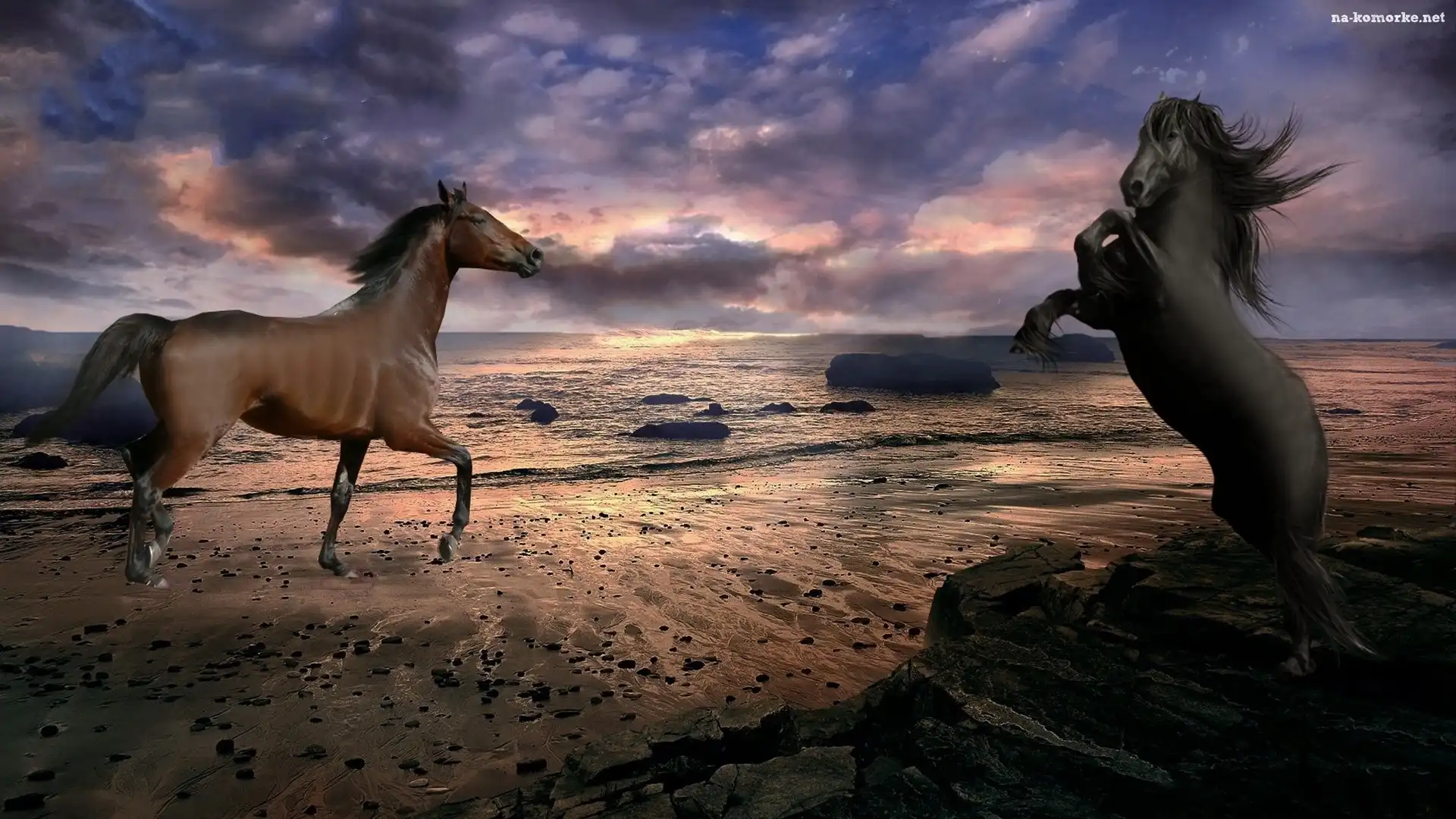 Słońca, Morze, Dwa, Konie, Zachód na Komórkę