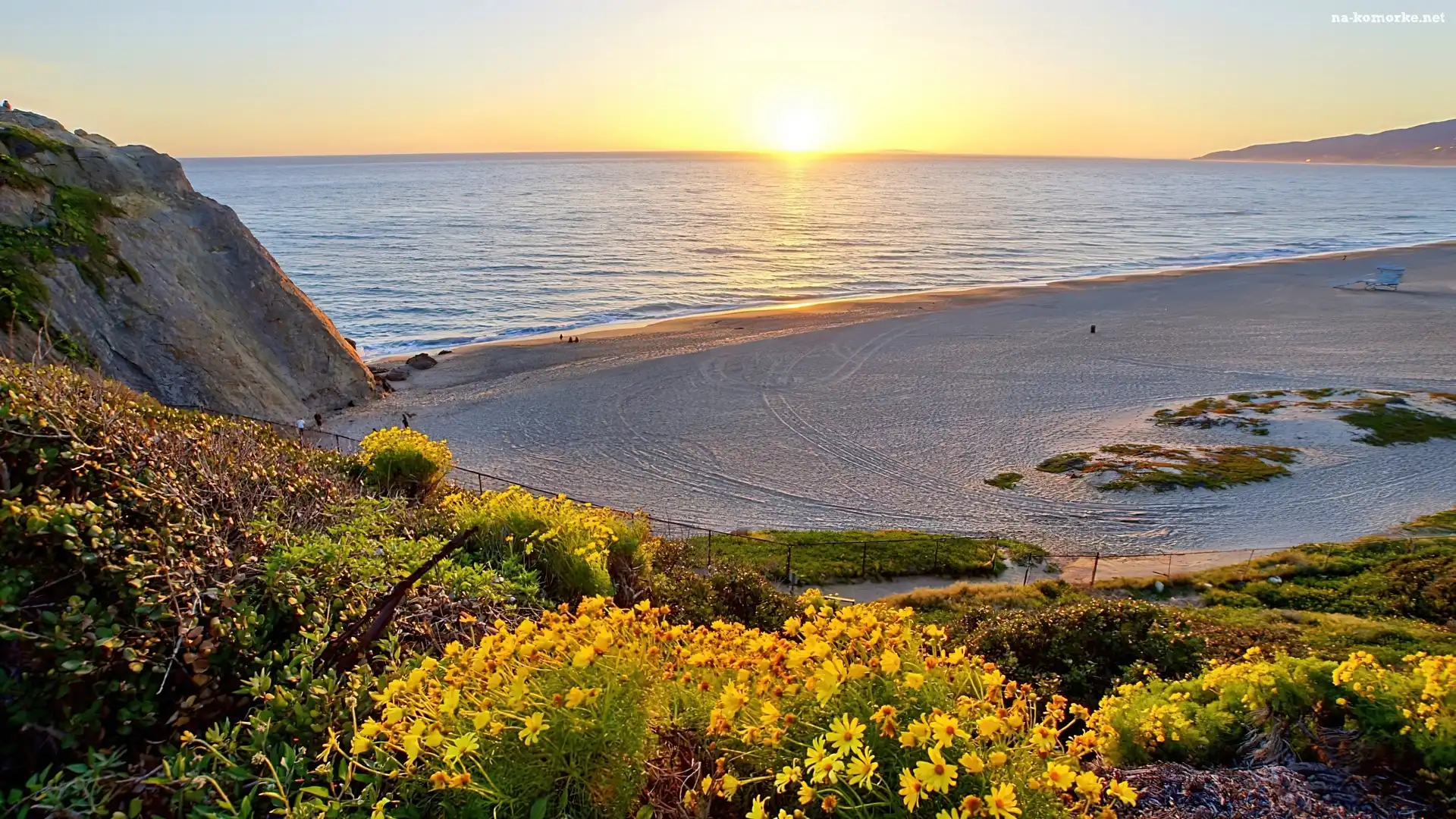 Słońca, Morze, Plaża, Kwiaty, Wschód na Komórkę
