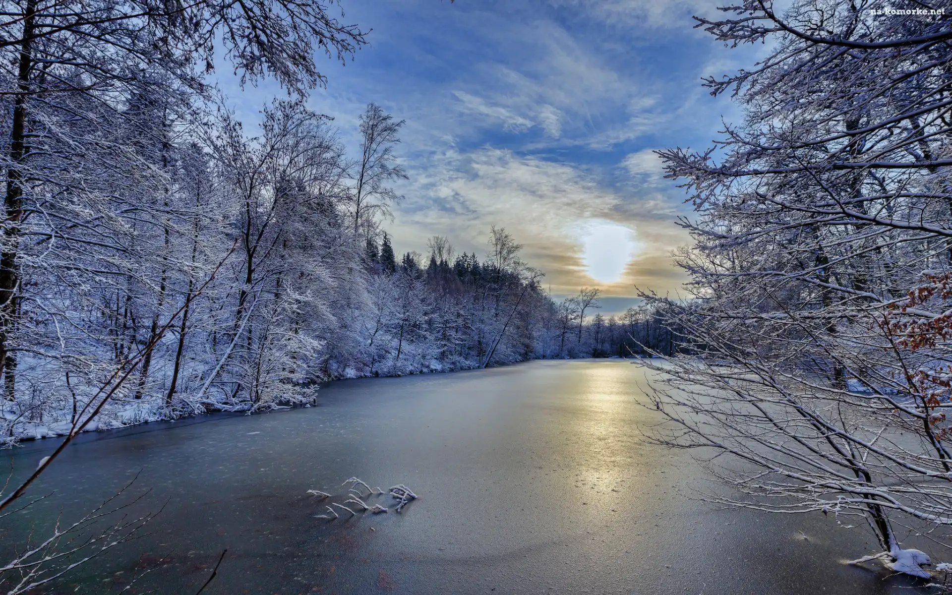 Słońca, Zima, Rzeka, Las, Wschód na Komórkę